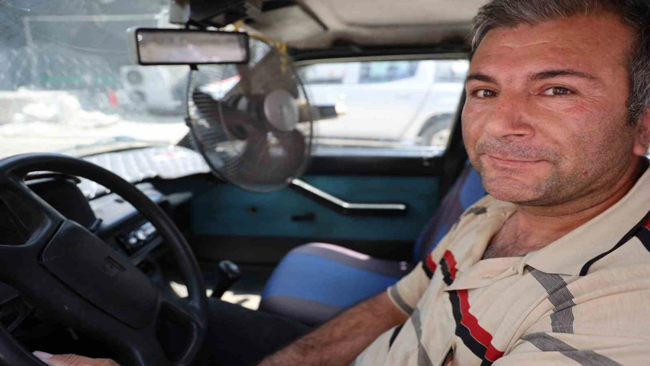 Adana’da bir sürücü klimasız olan 87 model otomobiline sıcaktan bunalınca vantilatör taktı.