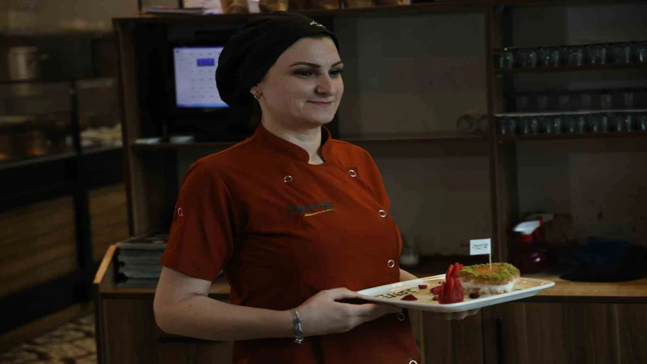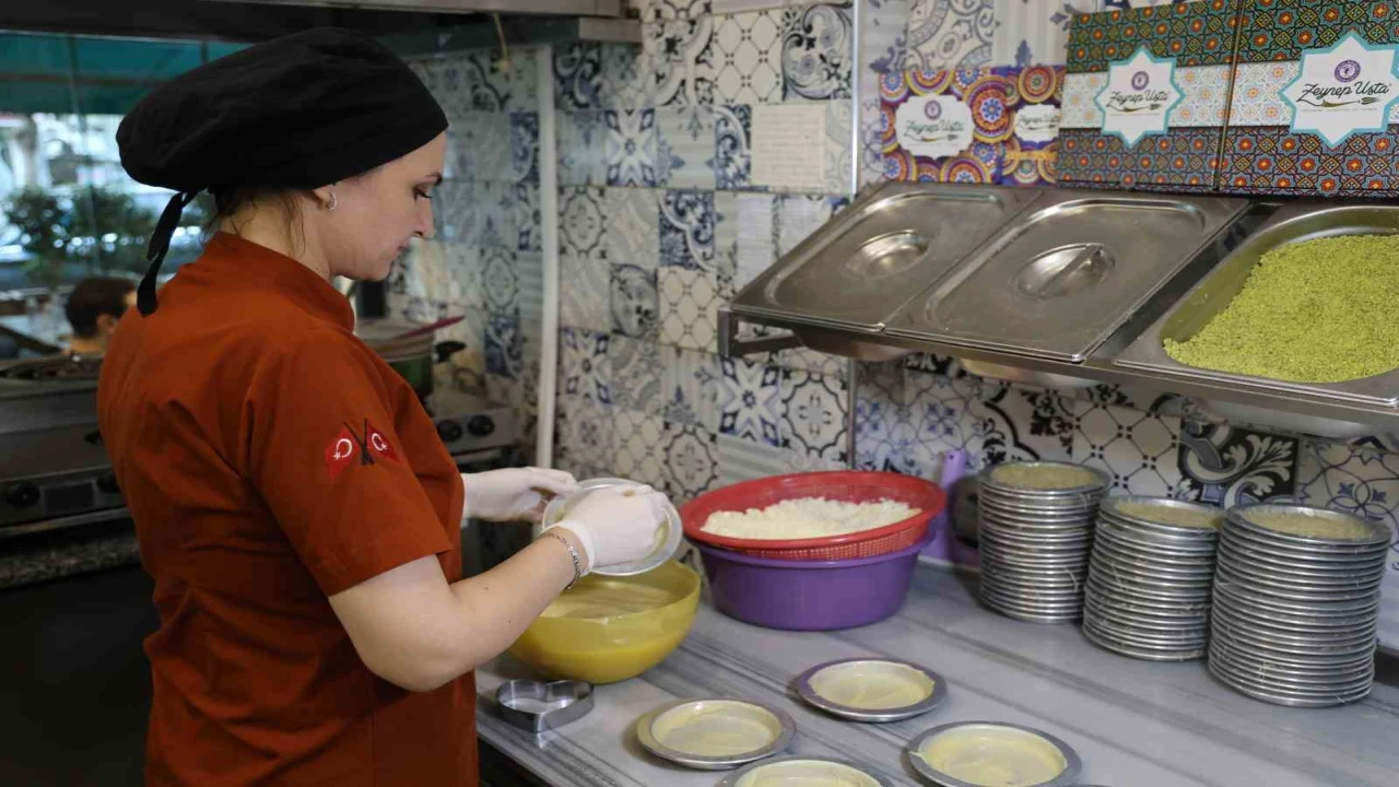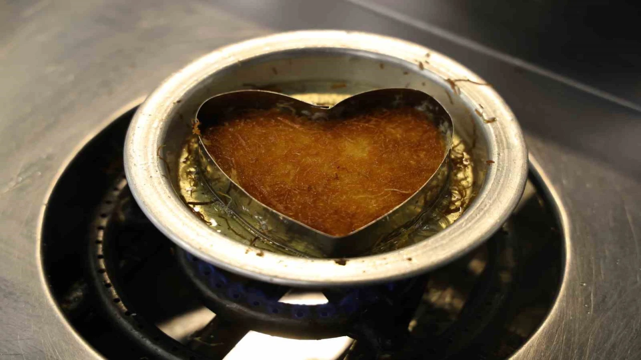 Kentte uzun yıllardır tatlıcılık yapan Zeynep Geyik, Sevgililer Günü’nde birbirlerine hediye sunma arayışa giren çiftlere alternatif sunmak için 14 Şubat’a özel kalp şeklinde künefe hazırladı.