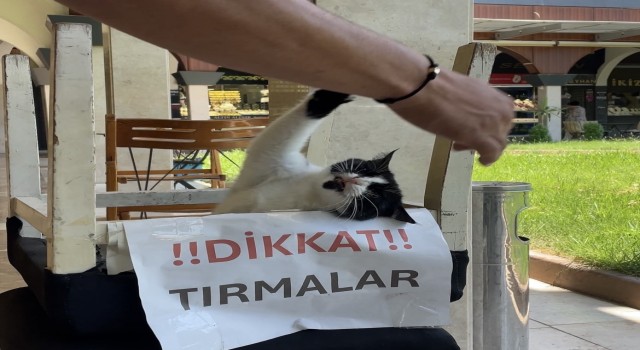 Seyhan ilçesi Reşatbey Mahallesi’ndeki Kuyumcular Çarşısı’nda yaşayan 10 yaşındaki dişi kedi ’Kızım’, vatandaşları tırmalamasıyla biliniyor. Bakımlarını kuyumcu esnafının üstlendiği ve kendisini besleyen esnafın dahi sevmekte güçlük çektiği kedi, kendisini sevmek isteyen vatandaşlara zor anlar yaşatıyor. Gün içerisinde yattığı noktaya ’Dikkat tırmalar’ yazısı asılmasının ardından kediye olan ilginin daha çok arttığını anlatan kuyumcu esnafı, kimsenin onun bulunduğu noktadan köpekle geçemediğine dikkat çekiyor.