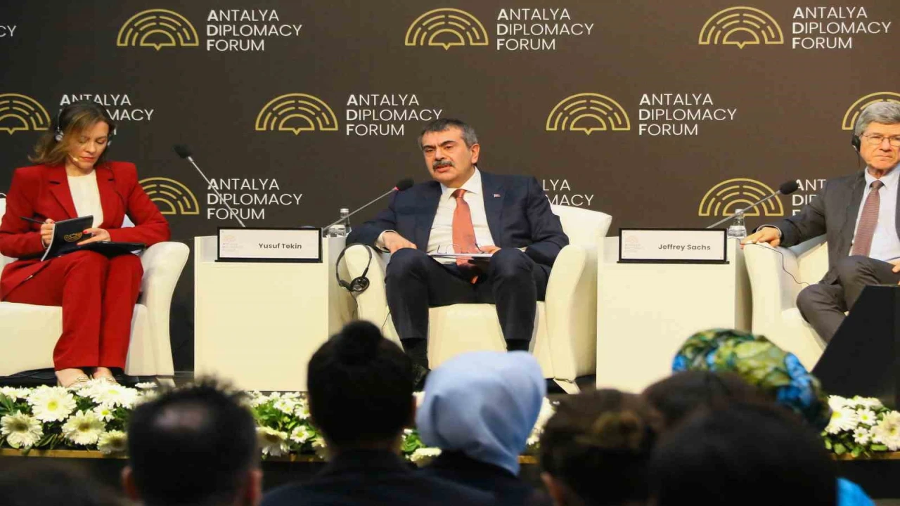 Antalya Diplomasi Forumu’nda konuşan Milli Eğitim Bakanı Yusuf Tekin, Türkiye Yüzyılı Maarif Modeli ile barış, insan hakları ve evrensel değerlere dayalı yeni bir eğitim anlayışını hayata geçirdiklerini belirtti. Tekin, "Eğitime erişim, öğretmen istihdamı ve kız çocuklarının eğitimi gibi alanlarda son 20 yılda önemli mesafeler katettik" dedi. Emine Erdoğan ise eğitimin medeniyet değerleriyle bütünleşmesi gerektiğini vurgulayarak, "İnsanlığa hoşgörü kültürünü yeniden teklif ediyoruz" ifadelerini kullandı.