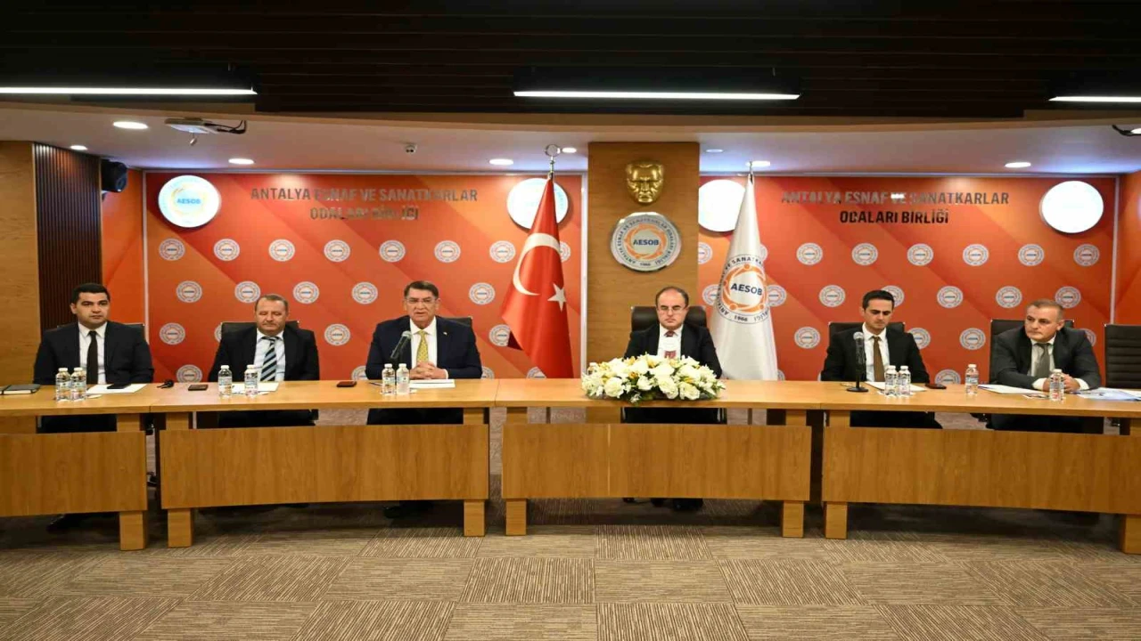 Antalya Esnaf ve Sanatkarlar Odaları Birliği (AESOB) ev sahipliğinde düzenlenen toplantıda, vergi düzenlemeleri, denetim süreçleri ve yapay zeka destekli yeni "KURGAN" sistemi ele alındı. Esnafın talepleri doğrudan ilgili kurumlara iletildi.