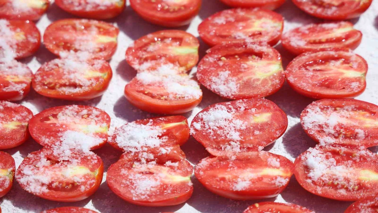 Domates kurusuna rağbet olduğunu ifade eden Mukaddes Kılıç, "Domates kurumuz, uzun yıllardan beri kahvaltımızı lezzetlendiren bir meze türüdür. Bu defa domateslerimizi özenle ve en güzellerini seçerek önce yıkıyoruz. Daha sonra domatesleri ikiye ayırarak güneşte temiz bir alanda tuzla beraber iyice kurutuyoruz. Kuruttuktan sonra tam kıvamına gelene kadar biber makinamızda istediğimiz kıvam alana kadar çekiyoruz ve dileğe göre işte baharat katabiliyoruz. Kahvaltılık, meze ve yemeklerde sos olarak kullanabiliriz. Biz kurumumuzda domates kurusunun özel bir mezesini yapıyoruz. Özel mezemiz çok fazla istek üzerine sipariş yapılıyor. Kavanozumuzun fiyatı 250 TL'dir. Domates kurusuna özel rağbet var. Domates kurusunu tuzlamazsak istediğimiz kıvamda kurumaz. Aslında tuz onun püf noktasıdır ve kıvamı gelene kadar bazen bu 2 ila 3 günde olabiliyor" ifadelerini kullandı.