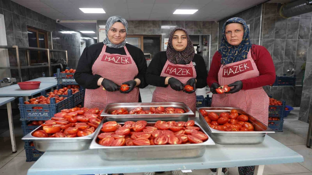 Asrın felaketinin ardından Hatay'da deprem bölgesindeki ekonominin iyileştirilmesi için yürütülen çalışmalar ve yatırımlar aralıksız devam ediyor. Altınözü ilçesinde faaliyet gösteren Zeytin Emeği Kadın Kooperatifi (HAZEK) içerisinde; endüstriyel mutfak ve güzellik salonunun bulunduğu tesisle hizmet vermeye devam ediyor. Yerel çiftçilerden hasat edilen domatesler, afetzede kadınlarının ellerinde ikiye ayrılıp tuzlanarak güneşin altında kurutulmaya bırakılıyor. 2 ila 3 günde kurutulan domatesler kış aylarında kahvaltıda, mezelerde ve yemeklerde sos olarak kullanılıyor, kavanoz fiyatı ise 250 TL'den satışa sunuluyor.