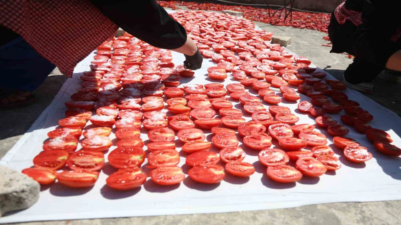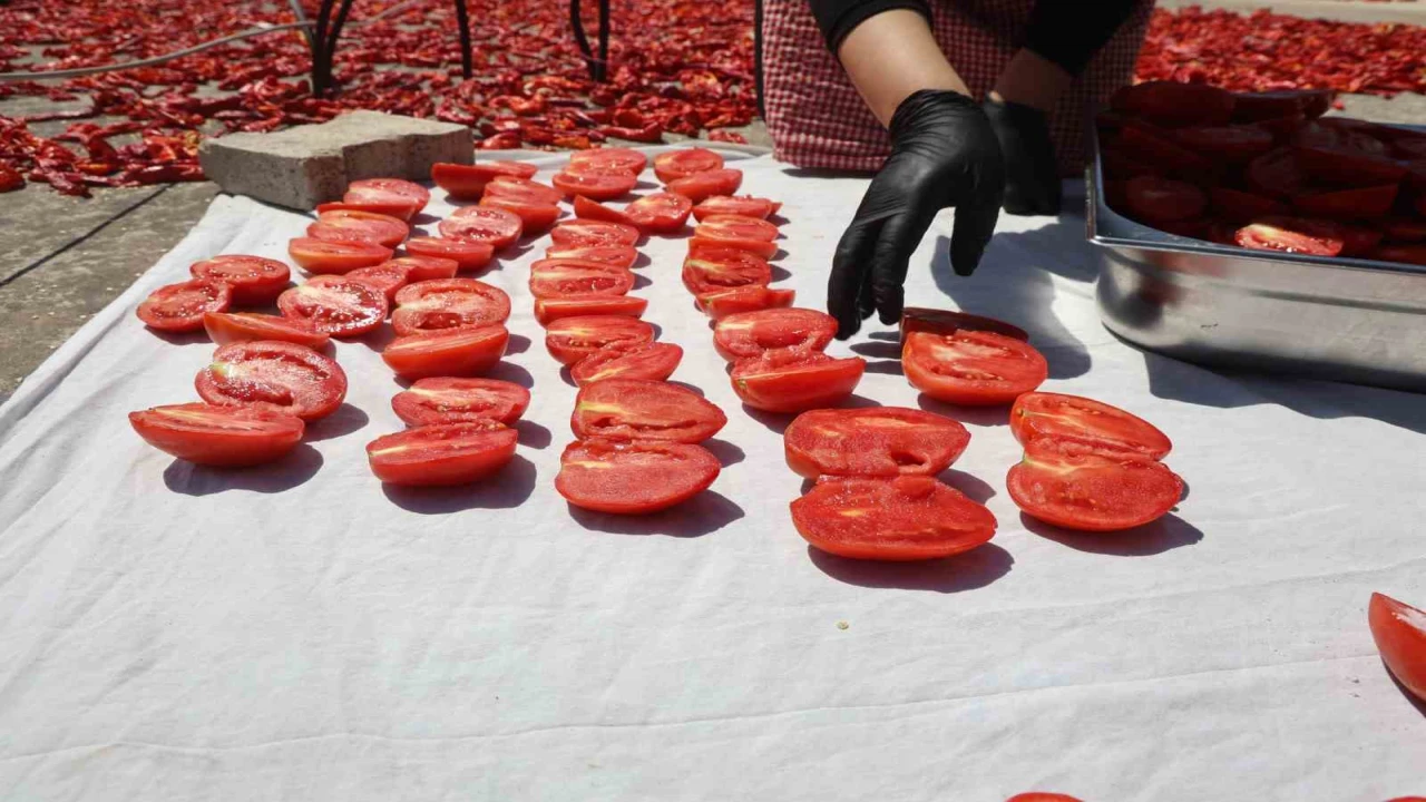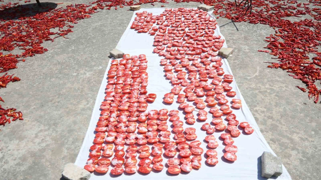 HATAY (İHA) - Hatay'da afetzede kadınların yoğun mesaisiyle kavurucu sıcakta kuruttuğu domatesler, kış aylarında sofralarda yerini alıyor.