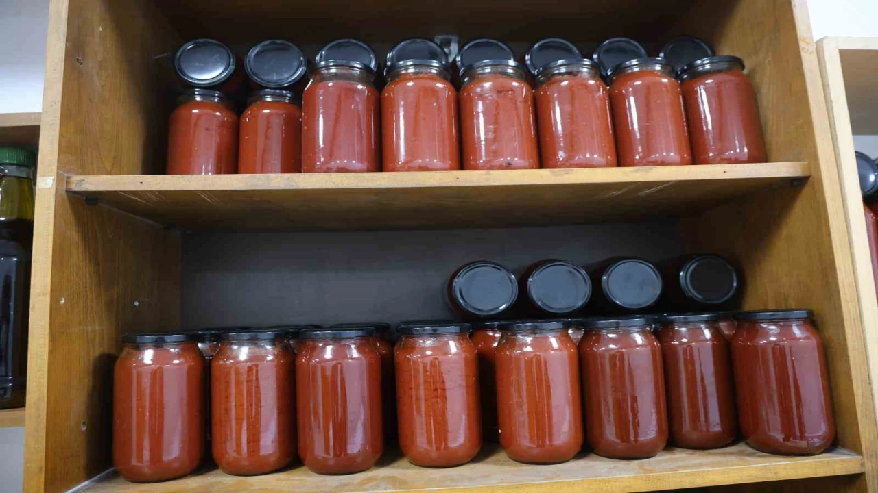 15 kadının el emeğinden oluşan domates salçası, kavanoz fiyatı 350 TL'den satılırken hem yerel çiftçiye hem de kadınlara katkı sağlıyor.