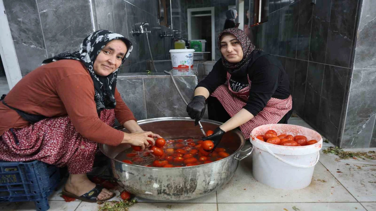 Afetzede kadınların ürettiği domates salçası aile ekonomisine katkı sağlıyor