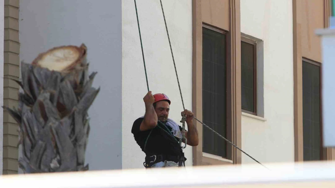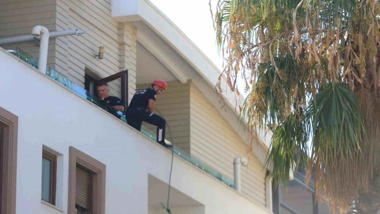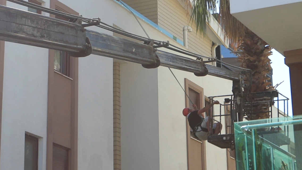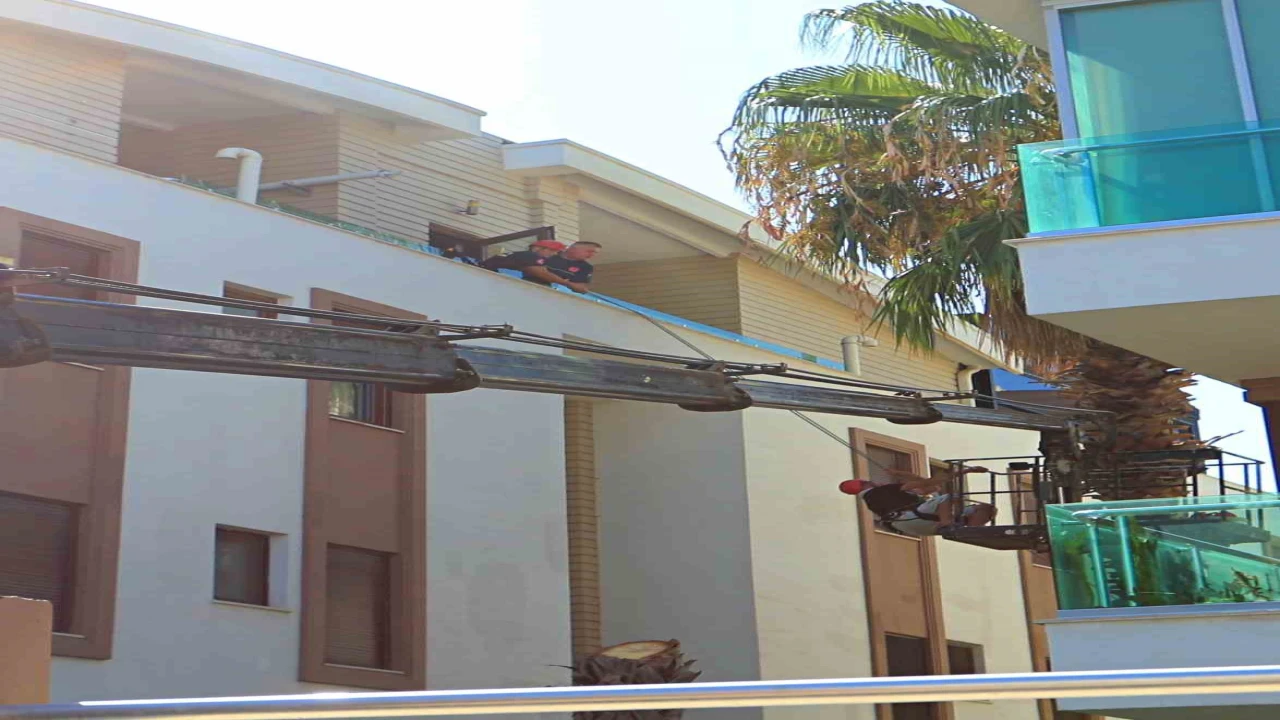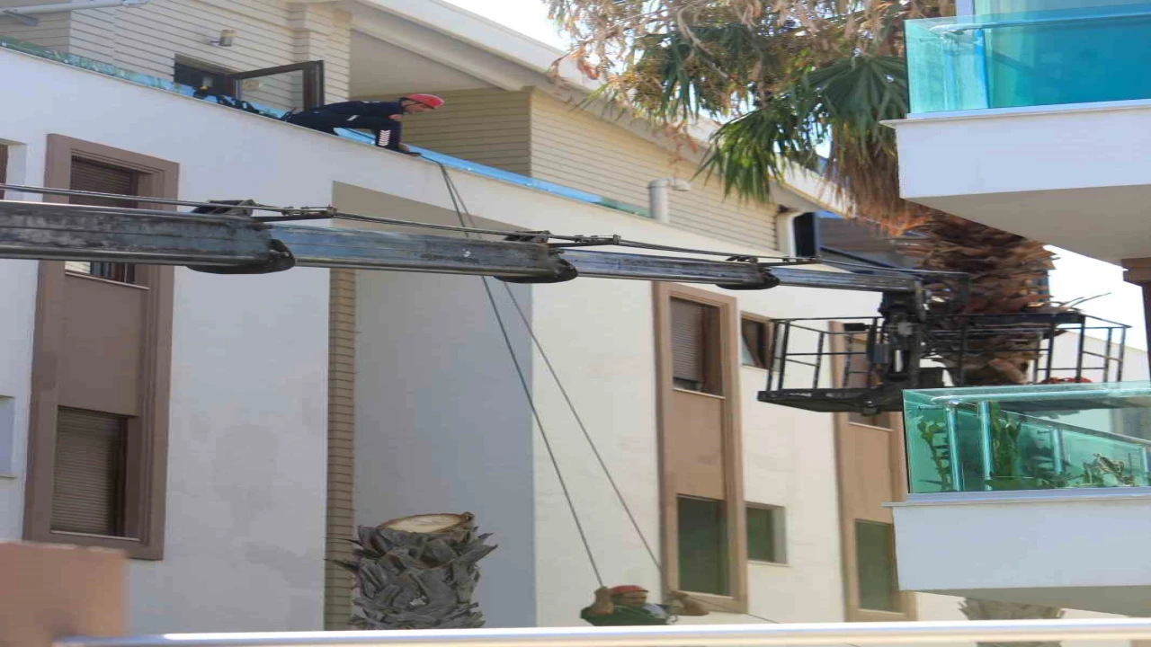 Olayın 112 Acil Çağrı Merkezi’ne bildirilmesi üzerine olay yerine Antalya Büyükşehir Belediyesi İtfaiye Daire Başkanlığı’na bağlı ekip sevk edildi. Verilen adrese gelen itfaiye kurtarma ekibi sepette mahsur kalan Ali A.’yı bulunduğu yerden kurtarmak için çalışma başlattı. Vincin sepetinde kurtarılmak için bekleyen adama itfaiye görevlileri çatıdan ip uzattı. İpi beline nasıl bağlaması gerektiği itfaiye ekipleri tarafından anlatılan Ali A., ekiplerin talimatlarına uygun şekilde ipi bağladıktan sonra mahsur kaldığı yerden kurtarıldı.