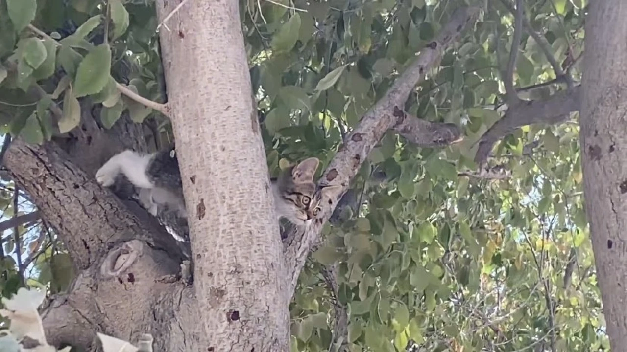 HATAY’IN ANTAKYA İLÇESİNDE AĞACA TIRMANARAK MAHSUR KALAN YAVRU KEDİ, BİR VATANDAŞ TARAFINDAN FARK EDİLEREK KURTARILDI.