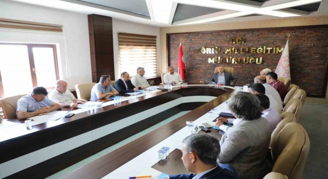 İl Milli Eğitim Müdürlüğü toplantı salonunda düzenlenen toplantıya İl Milli Eğitim Müdürü Hasan Kökrek, ilçe eğitim müdürleri ve il yöneticileri katıldı. Toplantıda 2024 yılı LGS sonuçları, MTSK, Fatih Projesi, tasarruf tedbirleri, atık kitaplar ve 2024-2025 eğitim öğretim yılı ders kitapları gibi konular ele alındı. Ayrıca, ilkokul 2. sınıftan itibaren tüm kademelerdeki öğrenciler için spor, görsel sanatlar, müzik ve bilişim olmak üzere dört alanda ücretsiz başlayan yaz okullarının denetimi ve 2024-2025 eğitim öğretim yılı için tüm okulların tespit edilen eksiklikleri ve çözüm önerileri görüşüldü. Toplantıda İl Milli Eğitim Müdürü Hasan Kökrek, yaptığı konuşmada, "2024-2025 eğitim yılı için özveriyle çalışmalarımızı sürdürüyoruz. Hedefimiz, her öğrenciye en iyi eğitimi sunmak ve geleceğe dair umutlarını yeşertmektir. Biliyoruz ki, eğitim bir milletin kalkınmasının temel taşıdır. Bu nedenle, tüm imkanlarımızı seferber ederek, okullarımızı modernleştirmeye, öğretmenlerimizin gelişimini desteklemeye ve eğitim materyallerimizi zenginleştirmeye devam edeceğiz." dedi.