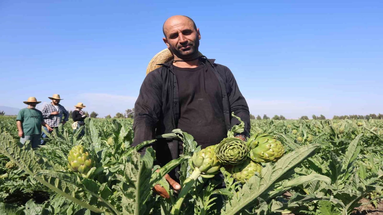 Akademisyen çiftçinin 7 yıl süren emekleriyle 120 dönüm alana yaydığı enginar üretiminde hasat başladı