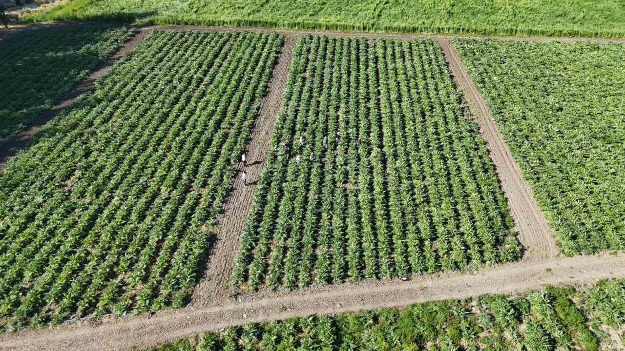 HATAY (İHA) - Hatay'da akademisyen çiftçi Elif Ovalı tarafından 5 dönüm arazide ekimi başlayan ve 7 yıl süren ürün geliştirme süreciyle birlikte 120 dönüm arazide ekimi yapılan enginarda bereketli hasat başladı.