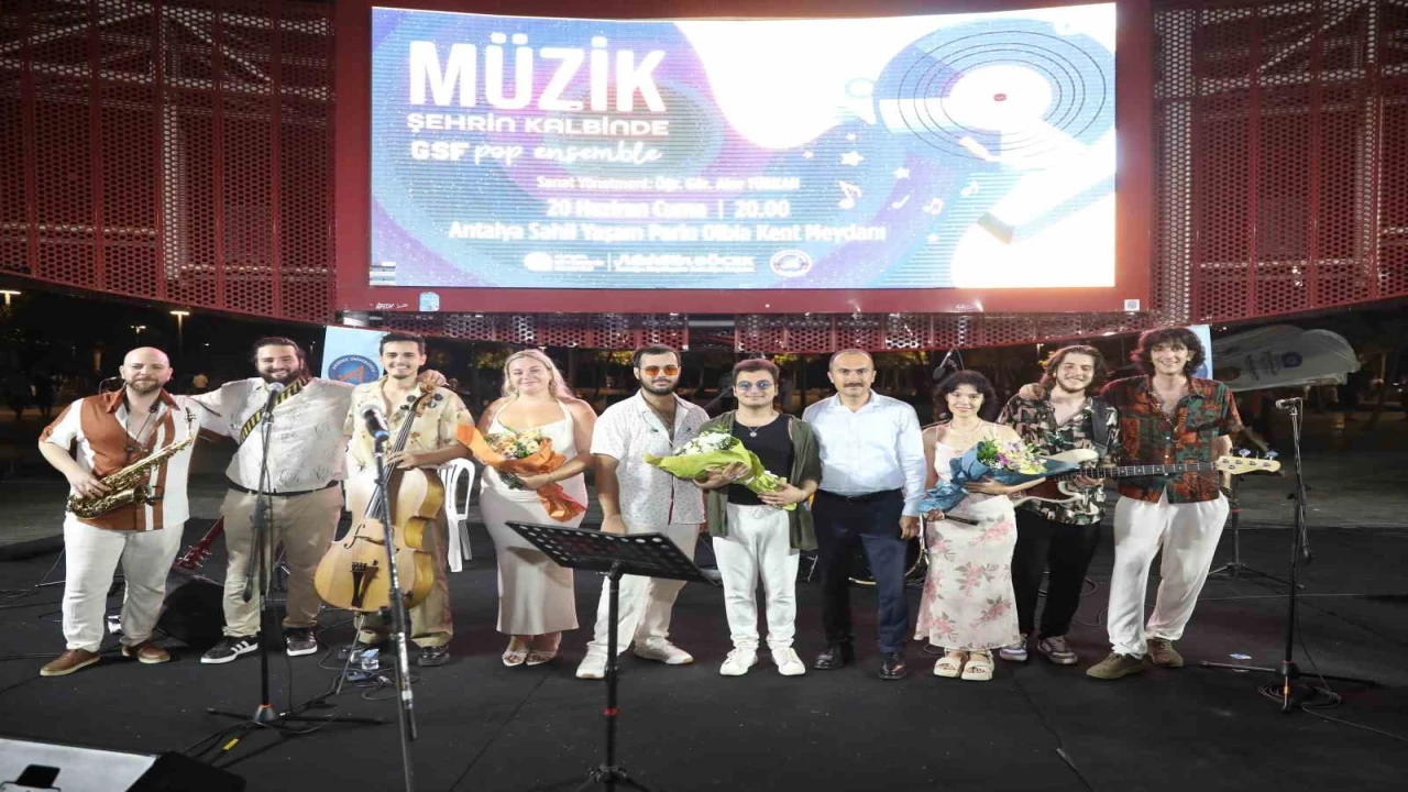 Antalya Büyükşehir Belediyesi Kültür ve Sosyal İşler Dairesi Başkanlığınca düzenlenen konserler devam ediyor. Antalya Sahil Yaşam Parkı Olbia Kent Meydanı’nda gerçekleşen konserde, Akdeniz Üniversitesi Güzel Sanatlar Fakültesi Pop Ensemble grubu sahne aldı. Yerli ve yabancı şarkıların seslendirildiği konserde vatandaşlar, danslarıyla şarkılara eşlik etti. Pop Ensemble grubunun birbirinden güzel şarkılarıyla, katılımcılar keyifli bir yaz akşamı yaşadı. Konserin sonunda Büyükşehir Belediyesi Kültür Şube Müdürü Şevket Akkaya, Sanat Yönetmeni Öğretim Görevlisi Alev Türkan’a konser anısına, grup adına ise solistlere çiçek takdim etti.
