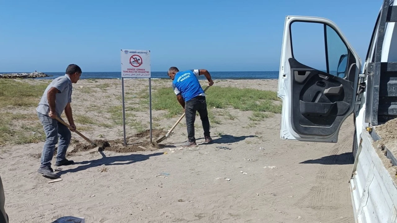 Adanalıoğlu ve Kazanlı mahallelerinin sahil kesimlerine ’denize girmek tehlikeli ve yasaktır’ yazılı tabelalar monte eden ekipler, Çay Mahallesi Ahmet Kaya Parkı, Müfide İlhan Mahallesi Parkı, Yeni Mahalle Zafer Parkı, Akdam Mahallesi Parkı, İhsaniye Mahallesi Menekşe Parkı ve Huzurkent Mahallesi Parkındaki aydınlatma arızalarını da giderdi.