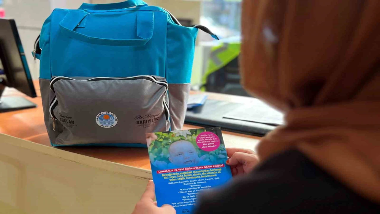 Ailelere hediye edilecek çantada, 0-3 ay arasındaki bebekler ve anneleri için birçok temel ihtiyaç malzemesinin yanında, bebek bakımı ile ilgili mutlaka bilinmesi gereken uyarıcı broşürler de bulunuyor.