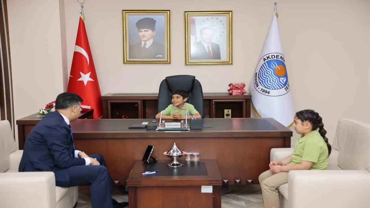 Konuyla ilgili açıklama yapan Akdeniz Kaymakamı ve Belediye Başkan Vekili Zeyit Şener, 23 Nisan’ın taşıdığı anlam ve öneme dikkat çekerek şunları söyledi: "Gazi Mustafa Kemal Atatürk’ün çocuklara armağan ettiği bu anlamlı gün, sadece bir bayram değil; aynı zamanda geleceğimizi emanet ettiğimiz çocuklarımıza duyduğumuz güvenin de bir simgesidir. Bugün makam koltuğunu çocuklara devretmekten büyük mutluluk duydum. Onların düşüncelerini ve vizyonunu dinlemek hepimiz için ilham verici oldu. Onların sesi, fikri ve hayalleri bizim en kıymetli rehberimizdir."
