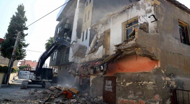 MERSİN'İN MERKEZ İLÇE AKDENİZ BELEDİYESİ, KENDİLİĞİNDEN ÇÖKME RİSKİ TAŞIDIĞI İÇİN HALKIN CAN VE MAL GÜVENLİĞİNİ TEHDİT EDEN, GÖRSEL KİRLİLİK OLUŞTURMANIN YANI SIRA KİMİ ZAMAN TOPLUMSAL SORUNLARA DA YOL AÇAN METRUK YAPILARIN YIKIMINI SÜRDÜRÜYOR.