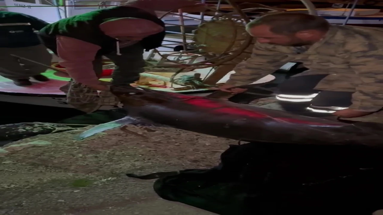 Hatay’da balıkçılık yapan Mustafa Oktay, Akdeniz’de oltasına takılan bir buçuk metre uzunluğundaki 115 kilogram ağırlığındaki kılıç balığını 3 arkadaşıyla birlikte 2 buçuk saat süren çalışmayla teknesine almayı başardı.