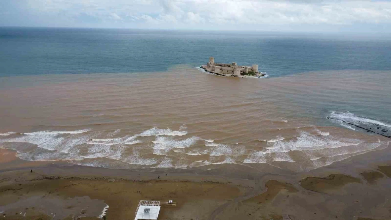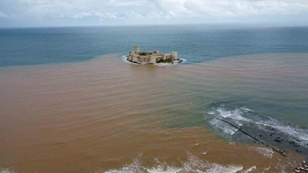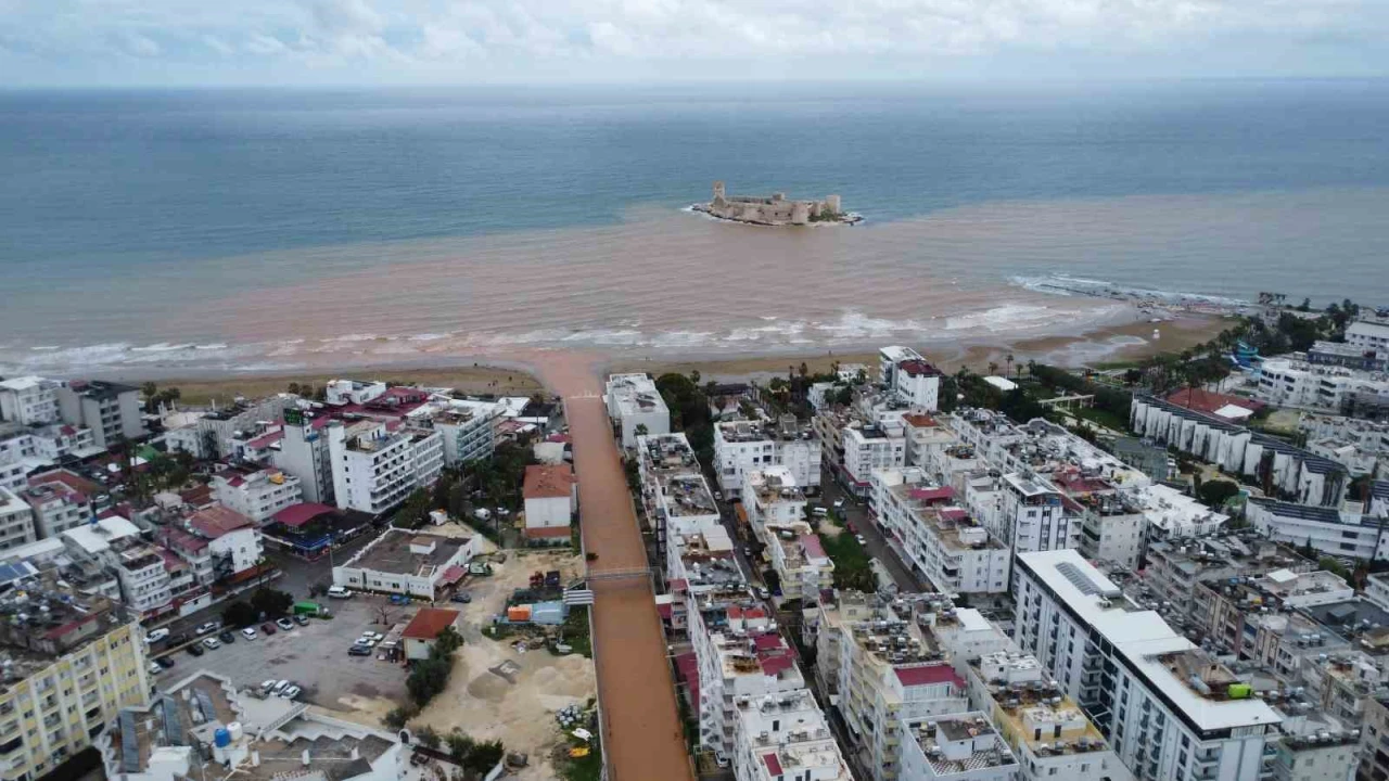 Mersin’de 3 gündür devam eden yağışlar etkisini sürdürürken derelere akan sel suları turizm merkezi Kızkalesi’ni hem çamura hem de kahverengiye bürüdü.