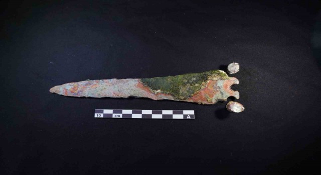 Antalya’nın Kumluca ilçesi açıklarında gerçekleştirilen su altı kazılarında Girit-Minos Uygarlığına ait olduğu belirlenen ve yaklaşık 3 bin 600 yıllık olduğu tahmin edilen gümüş perçinli bir tunç hançer, Akdeniz’in derinliklerinden gün yüzüne çıkarıldı.