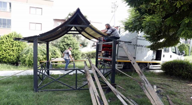 Son olarak Çay Mahallesi’nde bulunan Ahmet Kaya Parkında çalışma yapan Park ve Bahçeler Müdürlüğü ekipleri, parkın zaman içinde zarar gören kamelyalarını yeniledi. Ekipler, müdürlüğe ait fidanlık sahasındaki atölyede, park ve yeşil alanların ihtiyaç duyduğu çeşitli malzemeleri; oturma gruplarını, kamelya, çöp kovaları gibi malzemeleri de üreterek belediye bütçesine katkıda bulunuyor.
