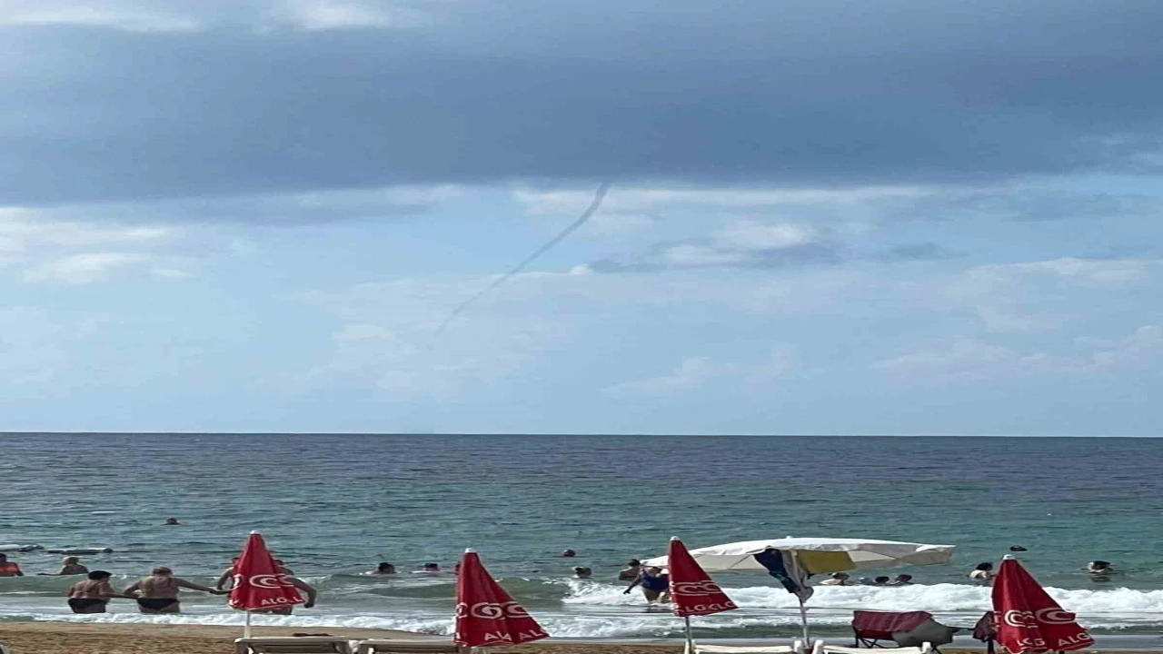 Alanya’da rüzgarlı hava etkili olurken, İncekum Plajı’nda denize dikey şekilde uzanan bir hortum çıktı. Plajda denize giren tatilcilerin merakla izlediği hortum bir süre sonra gözlerden kayboldu. Sahildekiler hortum anında ve sonrasında da denize girmeyi sürdürdü.