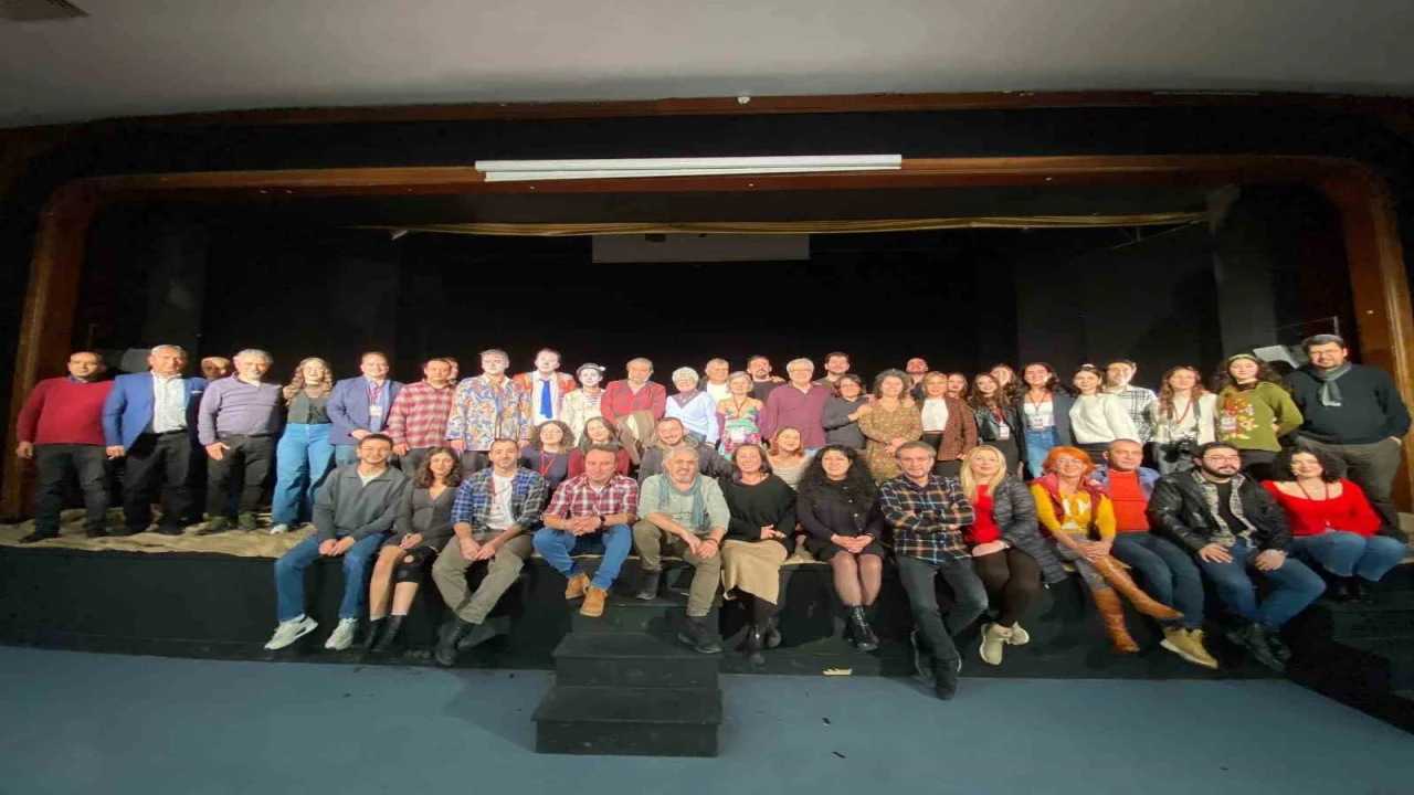 Toplumsal Araştırmalar Kültür ve Sanat İçin Vakıf (TAKSAV) tarafından 29 Kasım-9 Aralık tarihleri arasında düzenlenen 12’nci Uluslararası İzmir Tiyatro Festivali sona erdi. Bu yıl, “gelecek” teması işlenen festivalde 31 oyun, kentin 13 farklı salonunda sahnelendi. Yurt içinden ve yurt dışından profesyonel tiyatroların yoğun ilgi gösterdiği festivalde yer alan Alanya Belediye Tiyatrosu, ‘Ne Kadar Komik Bir Öykü Bu’ oyununu sanatseverler için sahneledi. Festivalin son günü olan 9 Aralık Pazartesi günü Selahattin Akçiçek Kültür Merkezi’nde sahne alan Alanya Belediye Tiyatrosu, salonu dolduran izleyiciden büyük beğeni aldı ve ayakta alkışlandı. İzmir Devlet Tiyatroları Müdürü Burcu Aksakal ve oyunun Yönetmeni Rejisör Yunus Emre Bozdoğan da izleyiciler arasındaydı. TAKSAV yönetimi tarafından Alanya Belediye Tiyatrosu oyuncularına plaket ve çiçek takdim edildi.