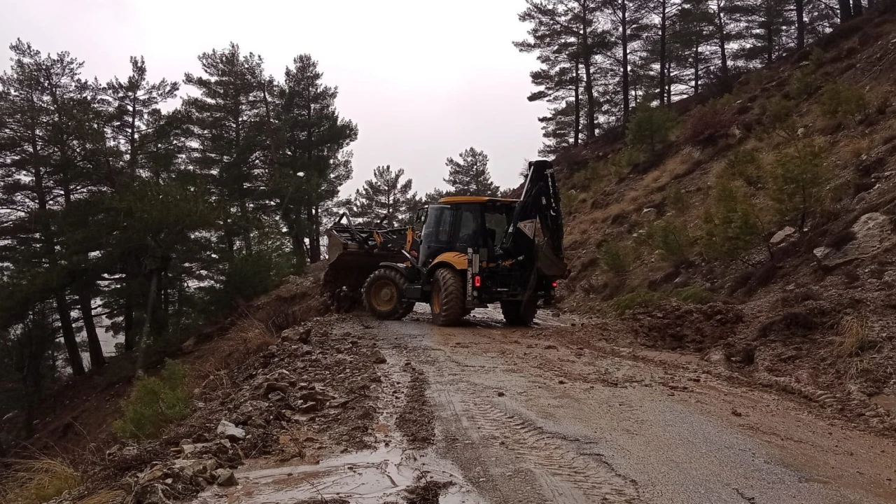 Antalya Büyükşehir Belediyesi ekipleri, olumsuz hava şartlarının etkisini sürdürdüğü Alanya kırsalında yolları açık tutmak için çalışıyor.