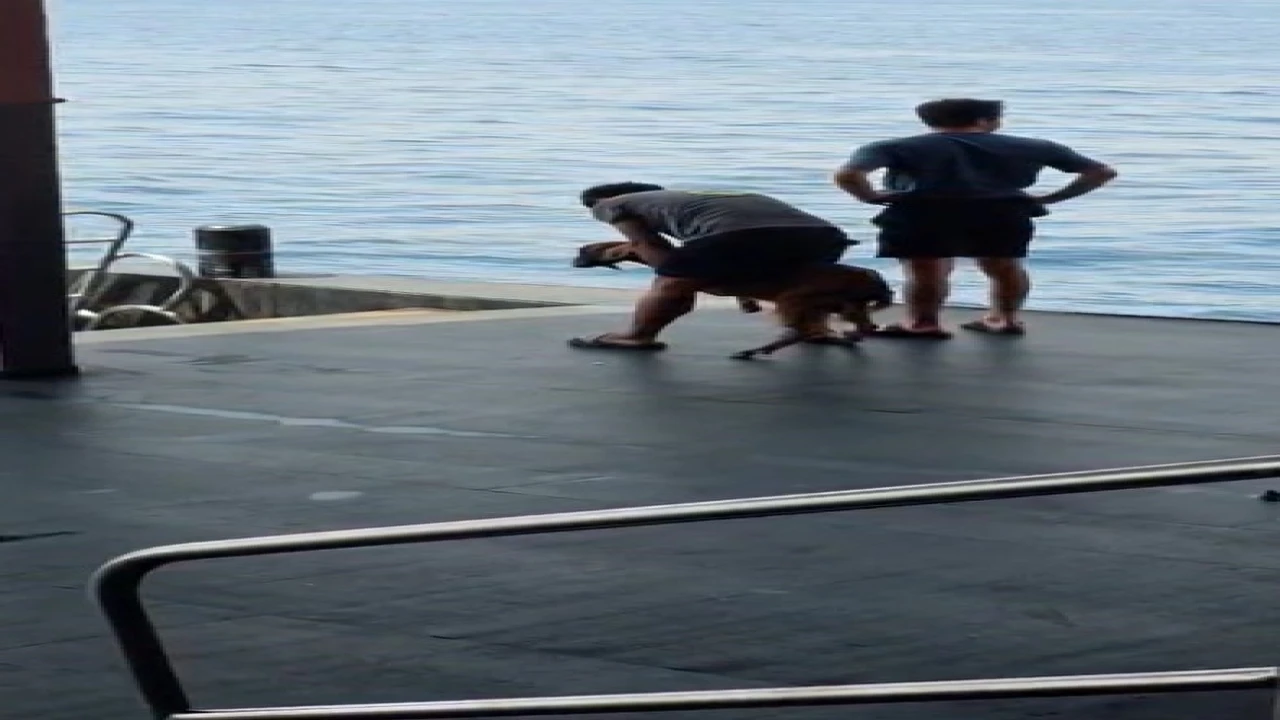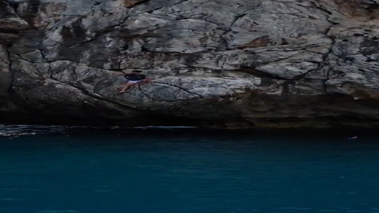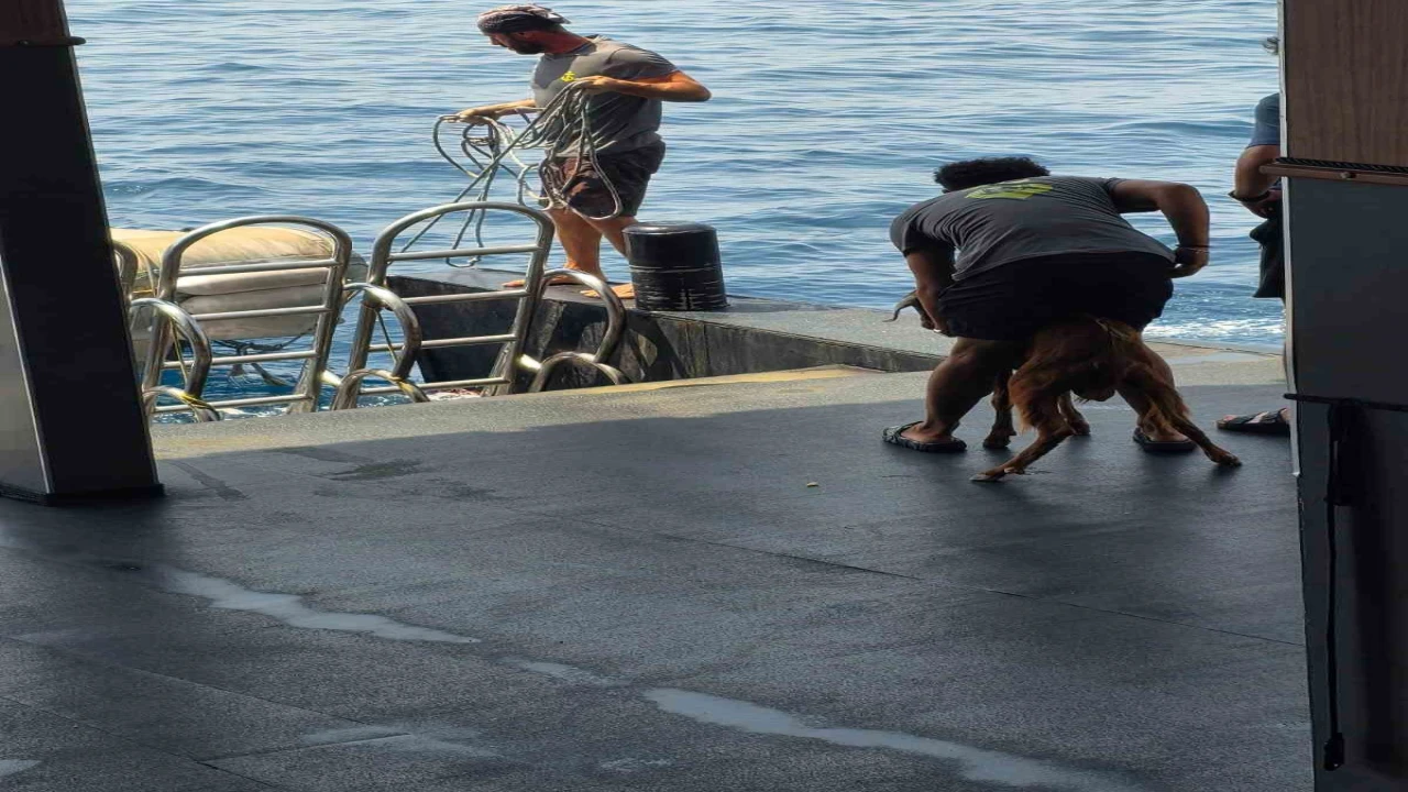 Öte yandan, dağ keçisinin kurtarılma anları teknedeki turistler tarafından cep telefonu kamerasına yansıdı.