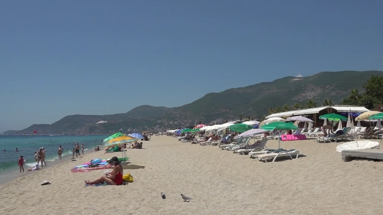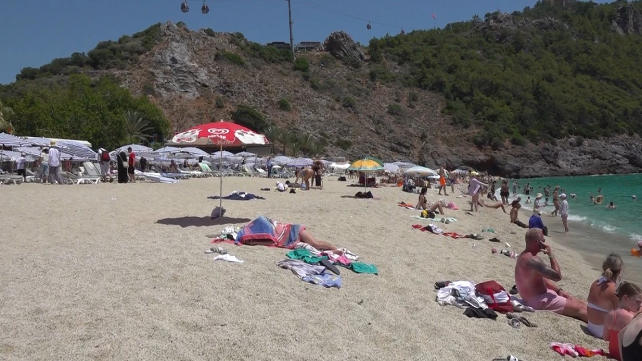 Antalya’nın Alanya ilçesinde aşırı sıcaktan bunalan yerli ve yabancı turistler sahilleri doldurdu.