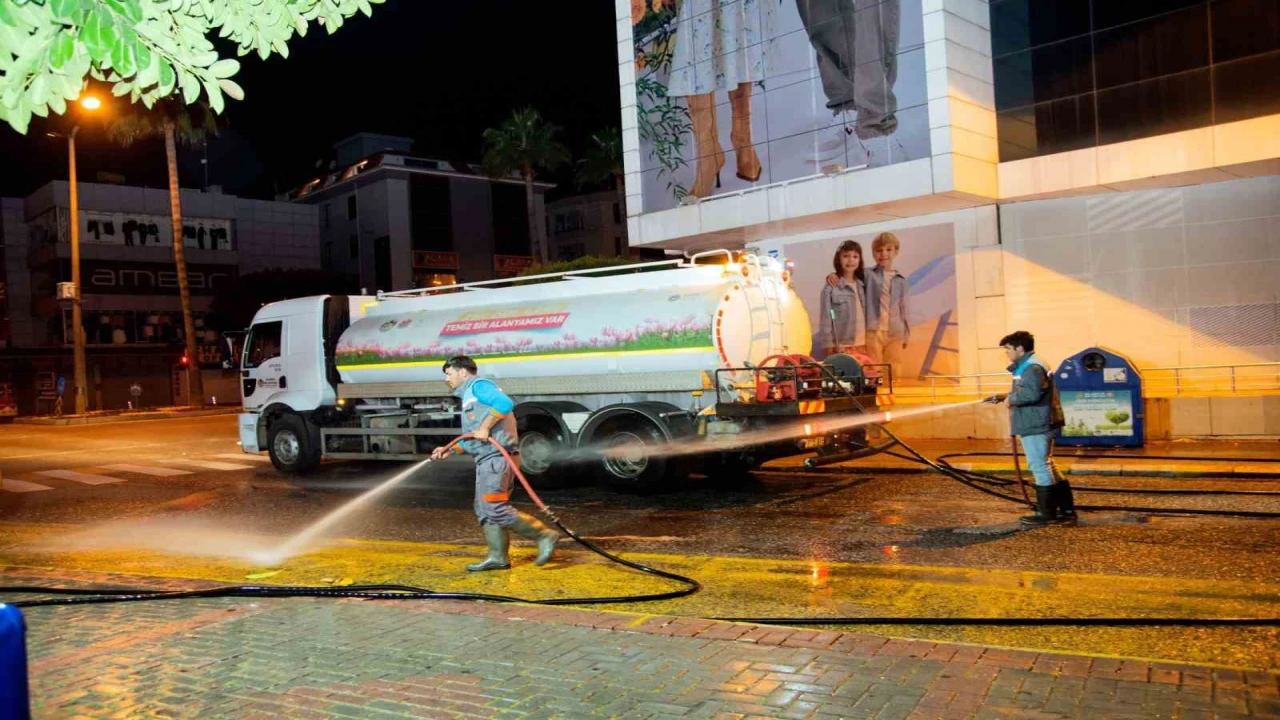 Antalya’nın Alanya Belediyesi Temizlik İşleri Müdürlüğü ekipleri, yaklaşan Ramazan Bayramı öncesinde kent genelinde kapsamlı yıkama çalışmalarına başladı.