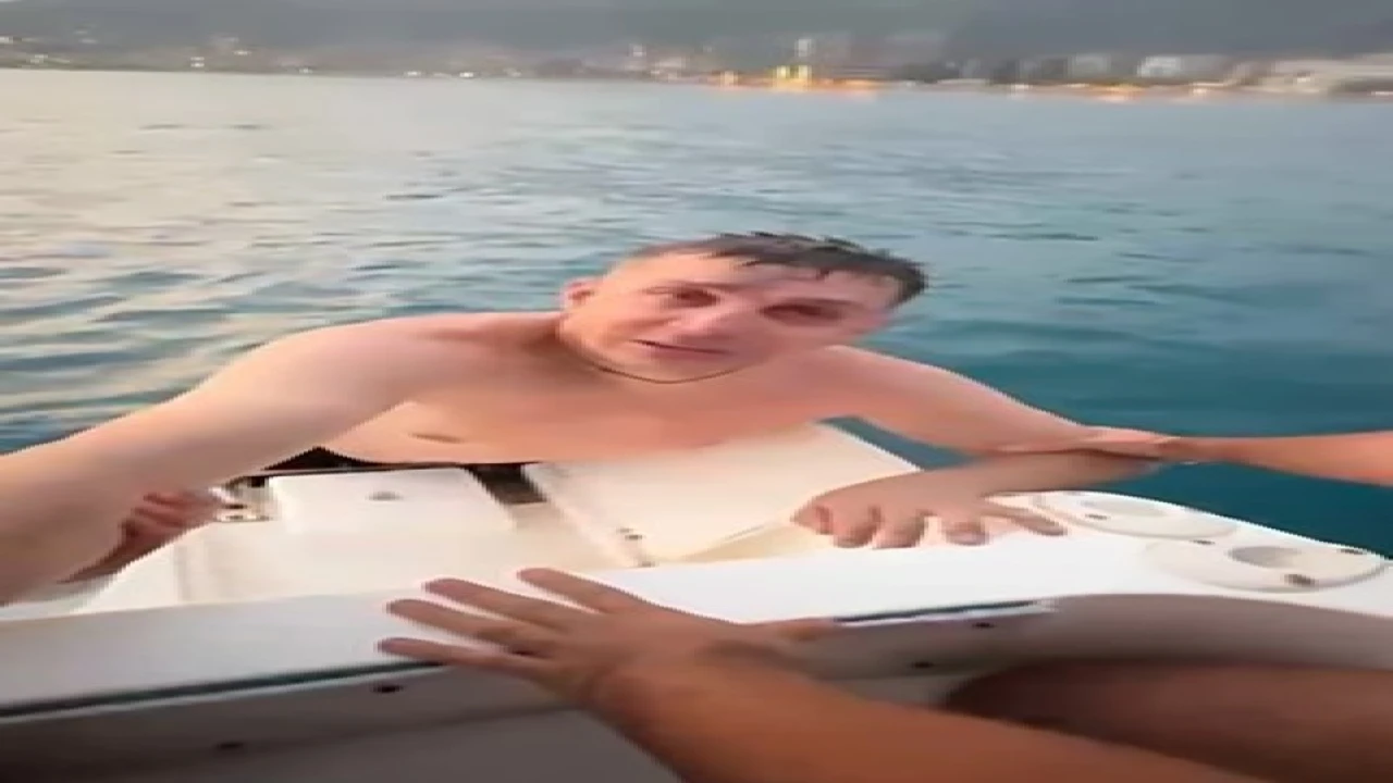 Boğulma tehlikesi atlatan Ukraynalı, tekneye alınarak sahile çıkarıldı. Olay anları teknede bulunan bir kişinin cep telefonu kamerasıyla saniye saniye kaydedildi.