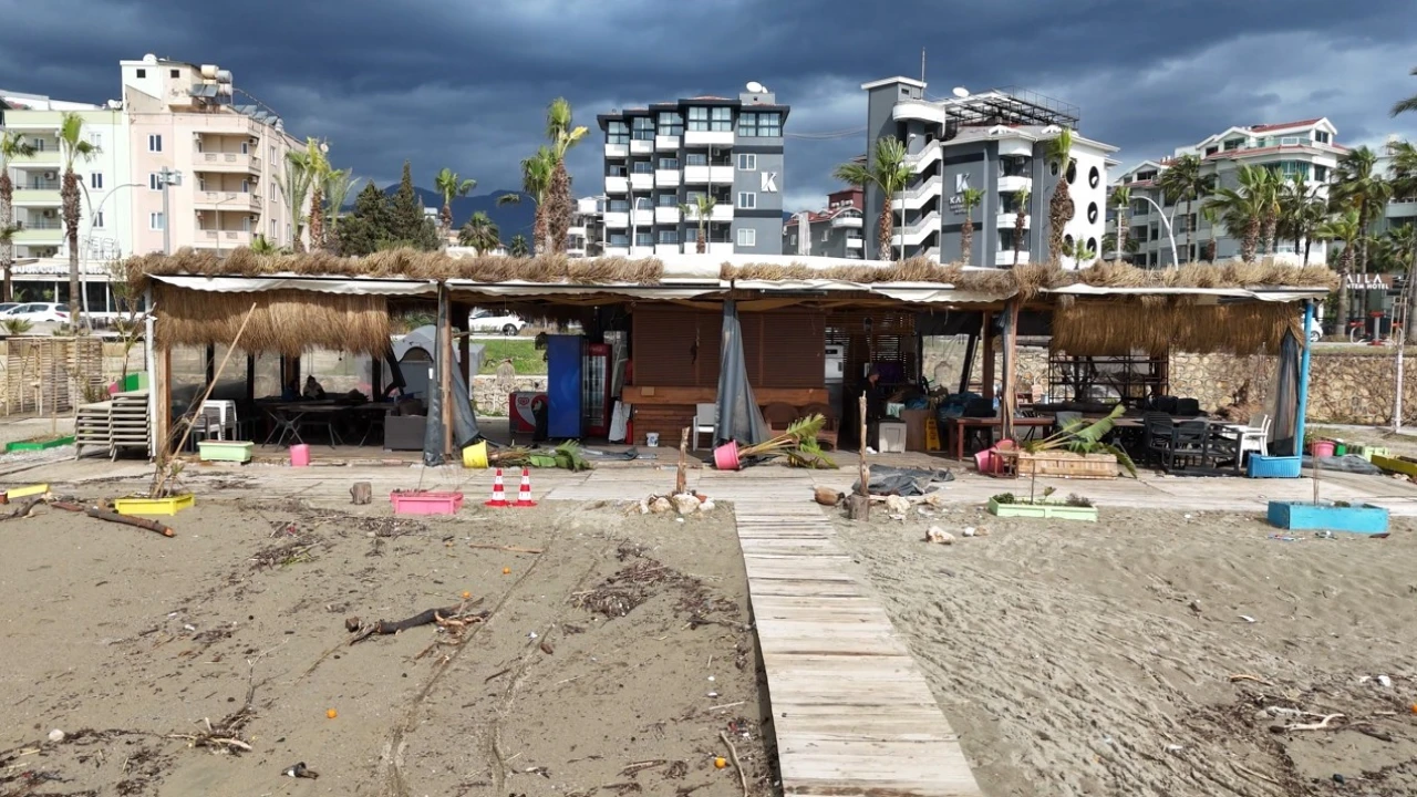 Antalya’nın Alanya ilçesinde gece saatlerinde etkili olan fırtına, sahil kesiminde işletmelerde maddi hasara neden oldu.