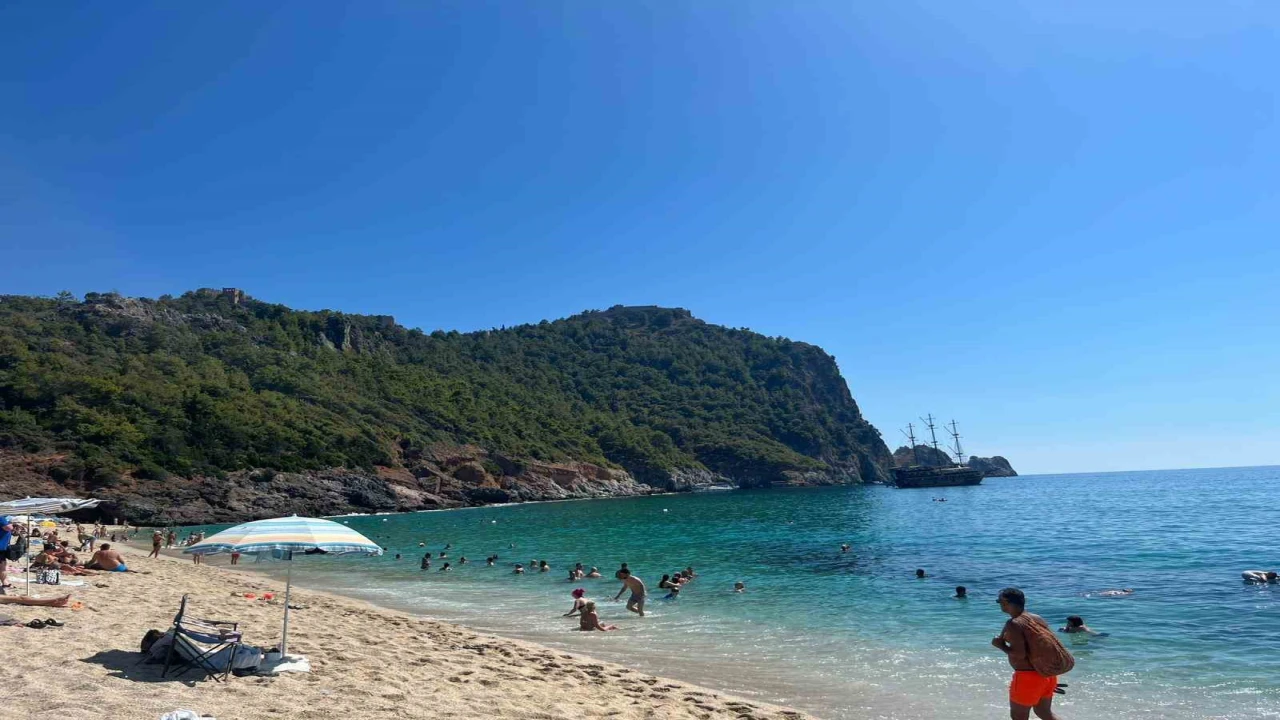 Antalya’nın Alanya ilçesinde hava sıcaklığının 32 dereceye çıktığı eylül ayında tatilciler dünyaca ünlü Kleopatra Plajı’nı doldurdu.