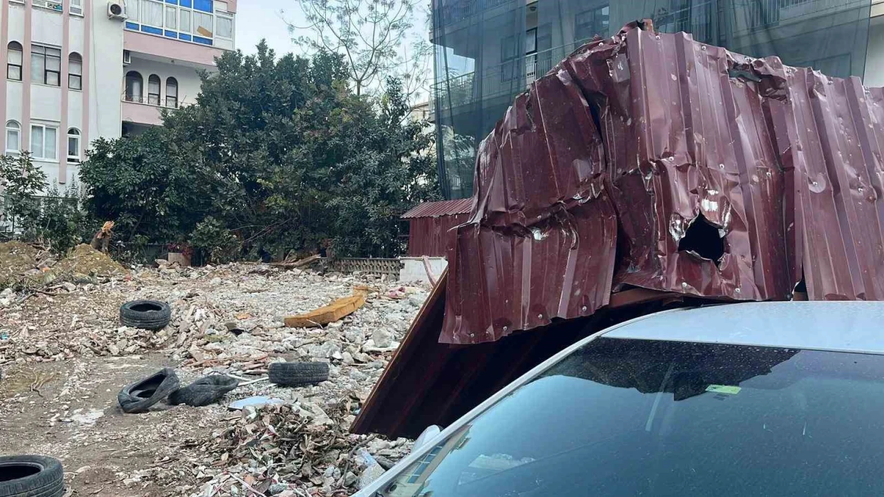 Meteorolojinin, Antalya’nın doğu ilçeleri için yaptığı kuvvetli yağış ve fırtına uyarılarının ardından Alanya’da gece saatlerinde etkili olan şiddetli fırtına, bir inşaat alanındaki demir korkuluklarını yerinden söktü. Rüzgârın savurduğu korkuluklar, park halindeki aracın üzerine devrilerek maddi hasara yol açtı.