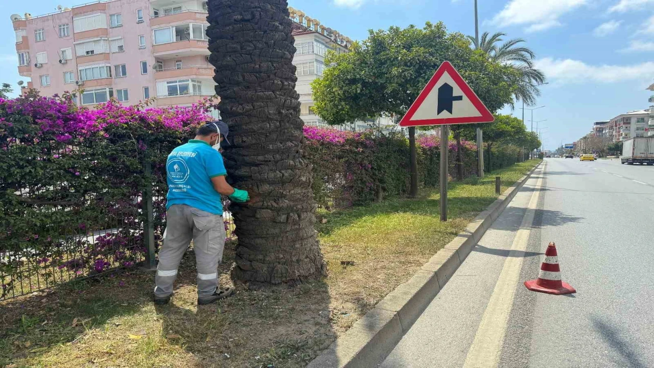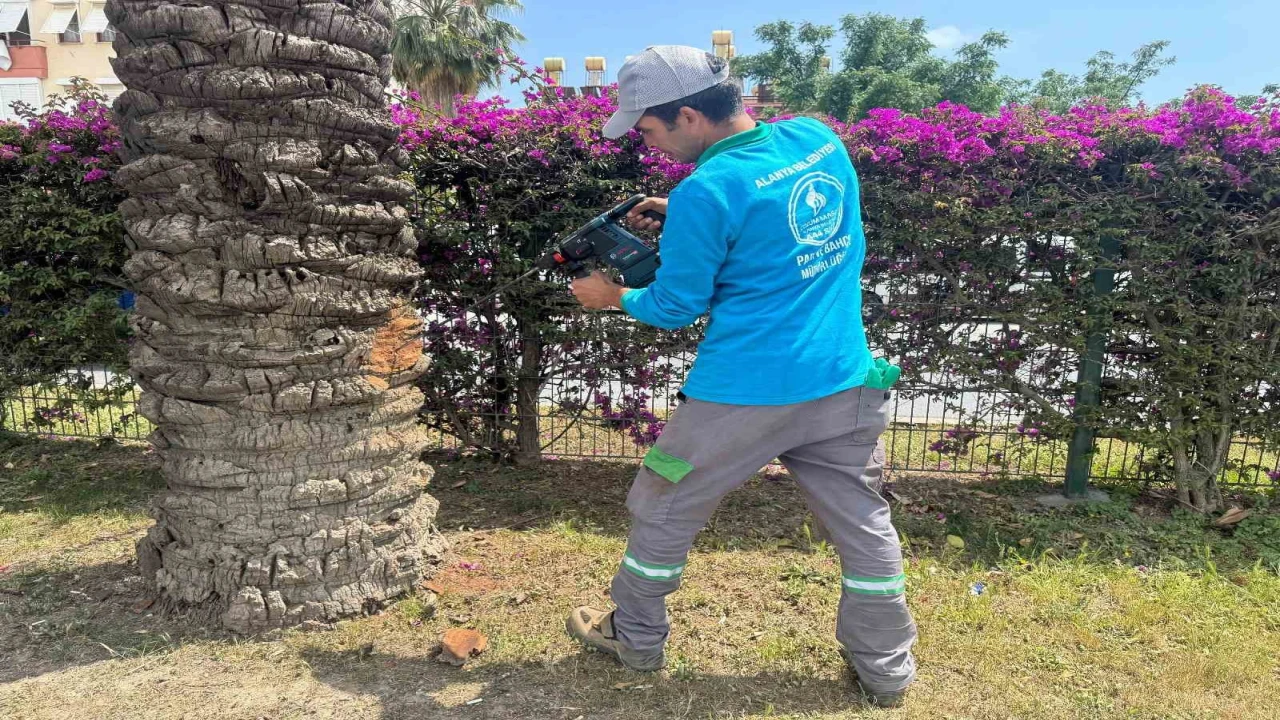 Alanya Belediyesi Park ve Bahçeler Müdürlüğü, kent genelindeki hurma ve palmiye ağaçlarını tehdit eden zararlılara karşı modern, çevreci ve uzun vadeli bir yöntem olan endoterapi uygulamasını gerçekleştiriyor.