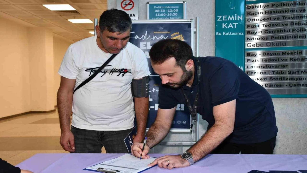 Hastane yönetiminin de destek verdiği etkinlikte, hasta ve hasta yakınlarına; şiddet gördüklerinde ya da tanık olduklarında başvurabilecekleri merciler aktarıldı.