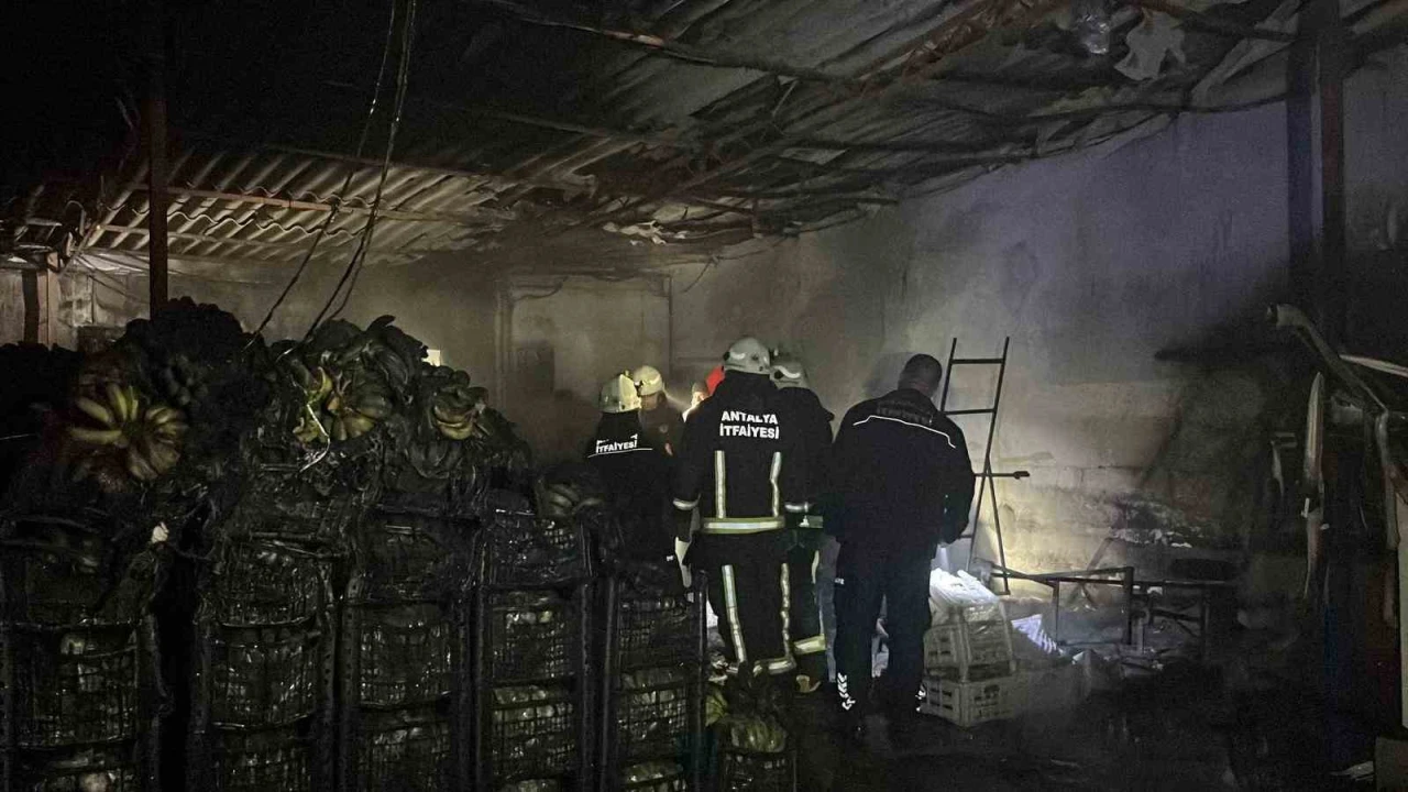 Antalya’nın Alanya ilçesinde bulunan Demirtaş Sebze ve Meyve Hali’nde muz sarartma tesisi deposunda çıkan yangın, itfaiye ekiplerinin müdahalesiyle kontrol altına alındı. Yangında kimse yaralanmazken tonlarca muz zarar gördü.