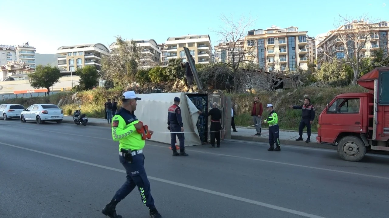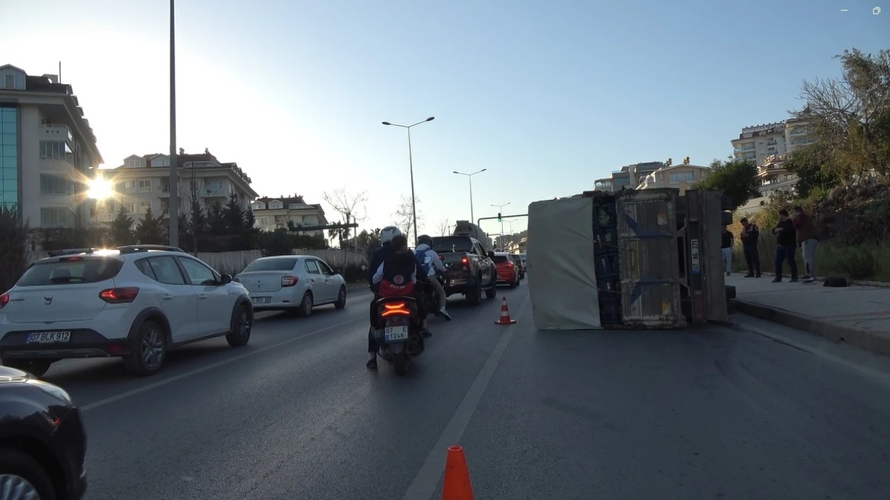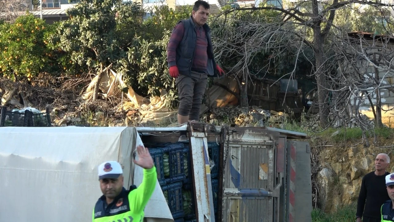 Antalya’nın Alanya ilçesinde kontrolden çıkan muz yüklü kamyonetin devrildiği kazada 1 kişi yaralandı.
