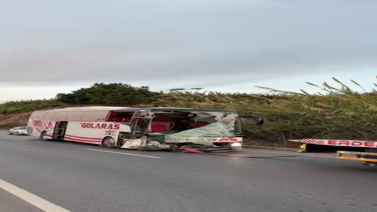ANTALYA’NIN ALANYA İLÇESİNDE ŞEHİRLERARASI OTOBÜS, DİREKSİYON HAKİMİYETİNİ KAYBETTİKTEN SONRA AYNI İSTİKAMETTEKİ TIRA ARKADAN ÇARPTTI. KAZADA OTOBÜS ŞOFÖRÜ, MUAVİN VE OTOBÜSTE YOLCU OLAN 5 KİŞİ YARALANDI.