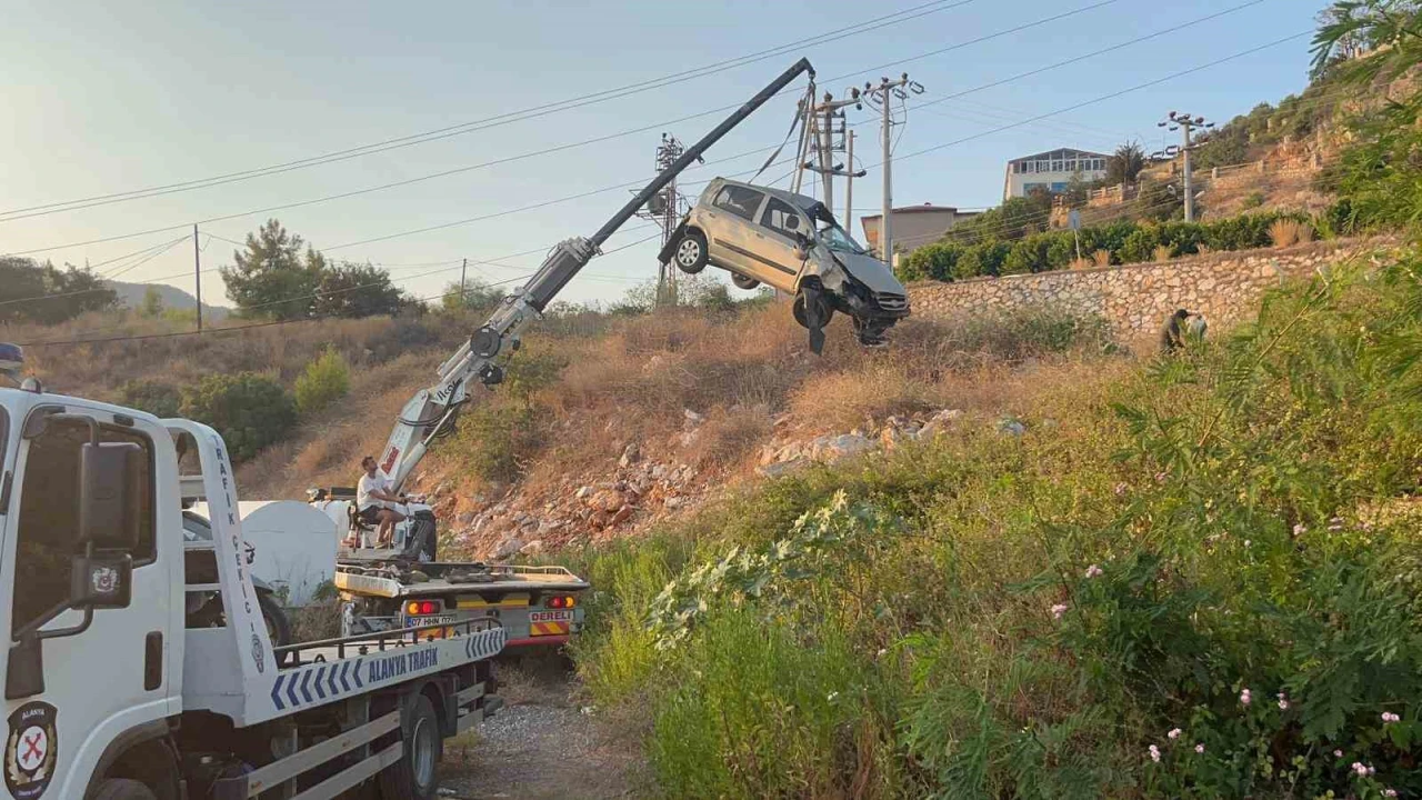 Antalya’nın Alanya ilçesinde sürücüsünün direksiyon hakimiyetini kaybettiği otomobil, yaklaşık 10 metre yükseklikten şarampole uçtu. Kazada otomobil sürücüsü hafif yaralandı.