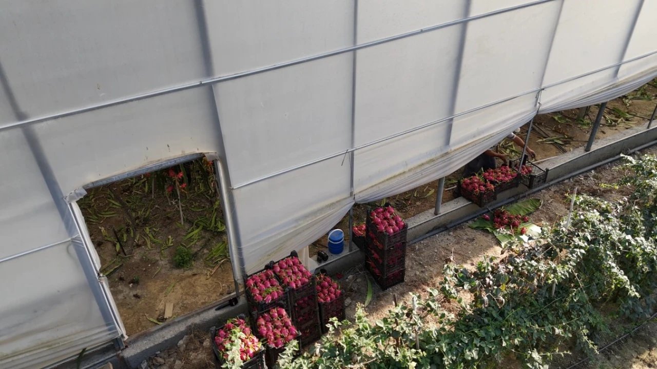 ANTALYA’NIN ALANYA İLÇESİNE BAĞLI MAHMUTLAR MAHALLESİ'NDE TROPİKAL MEYVE ÜRETİMİNDE ÖNEMLİ BİR YERE SAHİP OLAN EJDER MEYVESİNİN (PİTAYA) HASADINA BAŞLANDI. YAKLAŞIK 3 DÖNÜMLÜK ARAZİDE SERA ALTINDA YETİŞTİRİLEN EJDER MEYVELERİ, AİLE İŞLETMESİ TARAFINDAN AKŞAM SAATLERİNDE TOPLANARAK HALE GÖNDERİLİYOR. SERA SAHİBİ MEYVELERİNİ YABANİ HAYVANLARDAN FOTOKAPAN SİSTEMİ İLE KORUYOR.