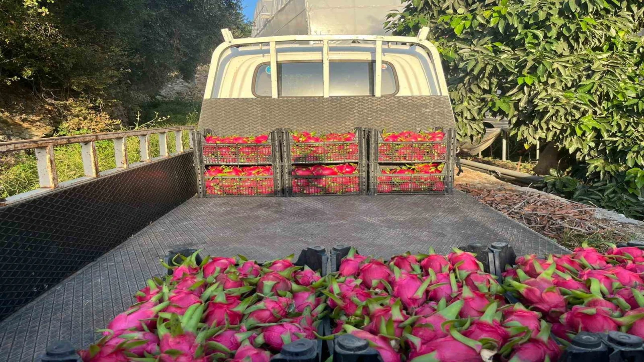 Akdeniz’in sıcak ve verimli arazilerinde tropikal meyve üretimi son hız devam ediyor. Bölgedeki iklim avantajlarını değerlendiren üreticiler dikenli yapısı nedeniyle toplanması zahmetli olan ejder meyvelerini plastik kasalara yerleştirip, araçla hal pazarına sevk ediyor. Hasat edilen meyveler burada boyutlarına göre ayrılıyor ve kilogram fiyatı 100 ila 150 TL arasında değişen ücretlerle tüccarlara satılıyor. Ejder meyvesi, hem yurt içi pazarda hem de yurt dışı ihracatında sofralarda yerini alıyor.