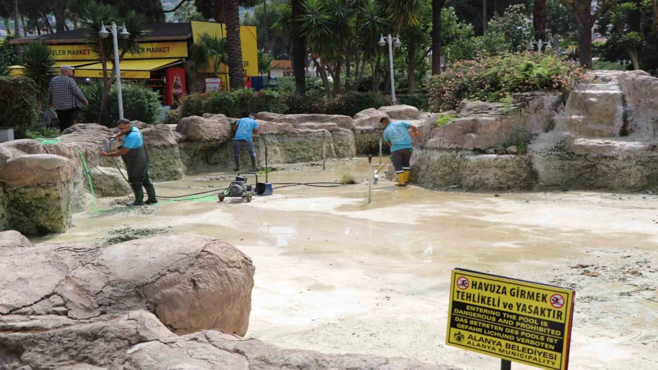 Alanya Belediyesi Park ve Bahçeler Müdürlüğü, kent genelindeki parklarda bulunan süs havuzlarında hummalı bir çalışma sürdürüyor. Bakımları yapılan ve yenilenen havuzlar, yaz sezonuna hazırlanıyor.