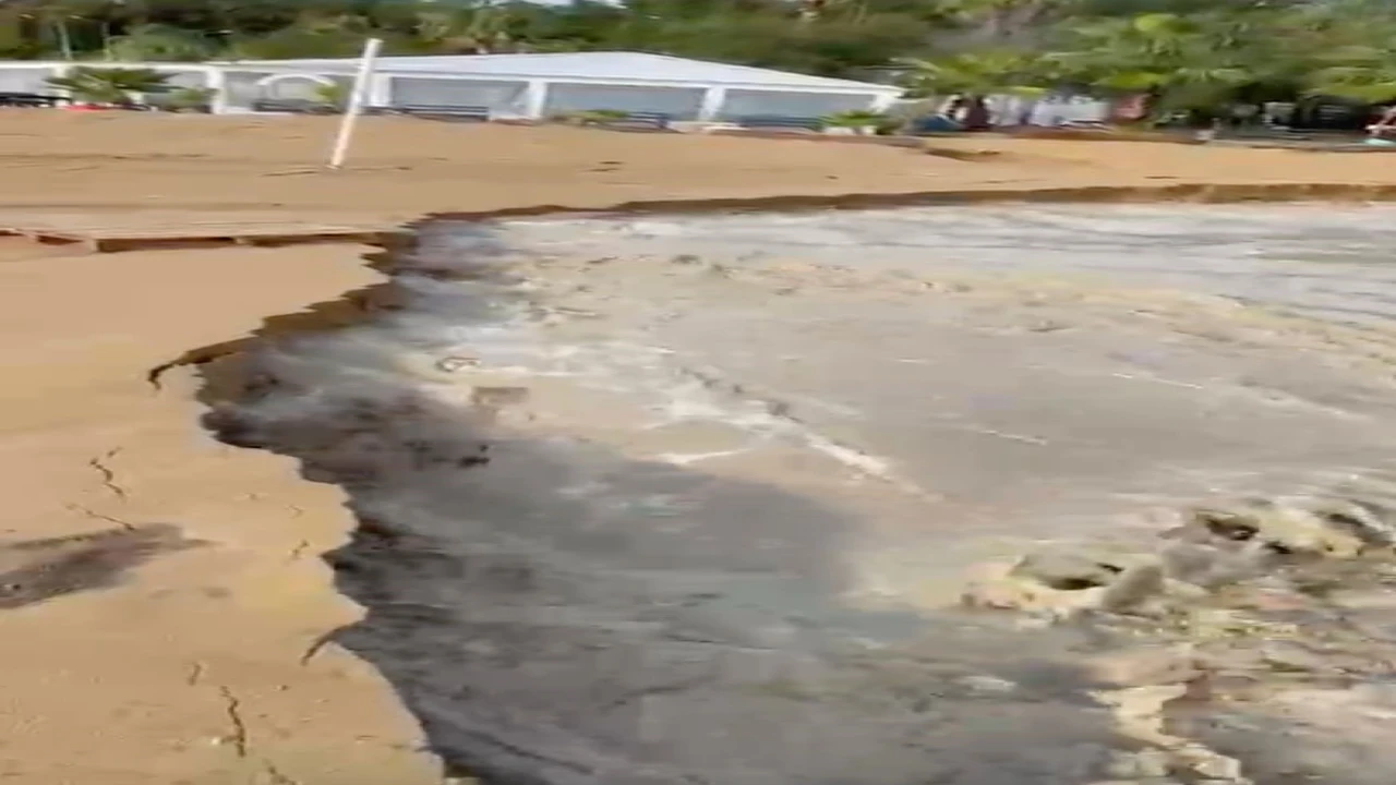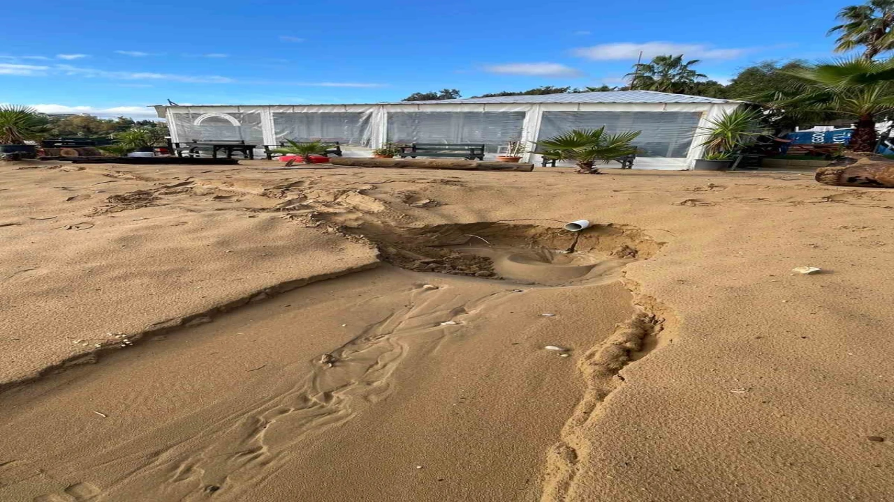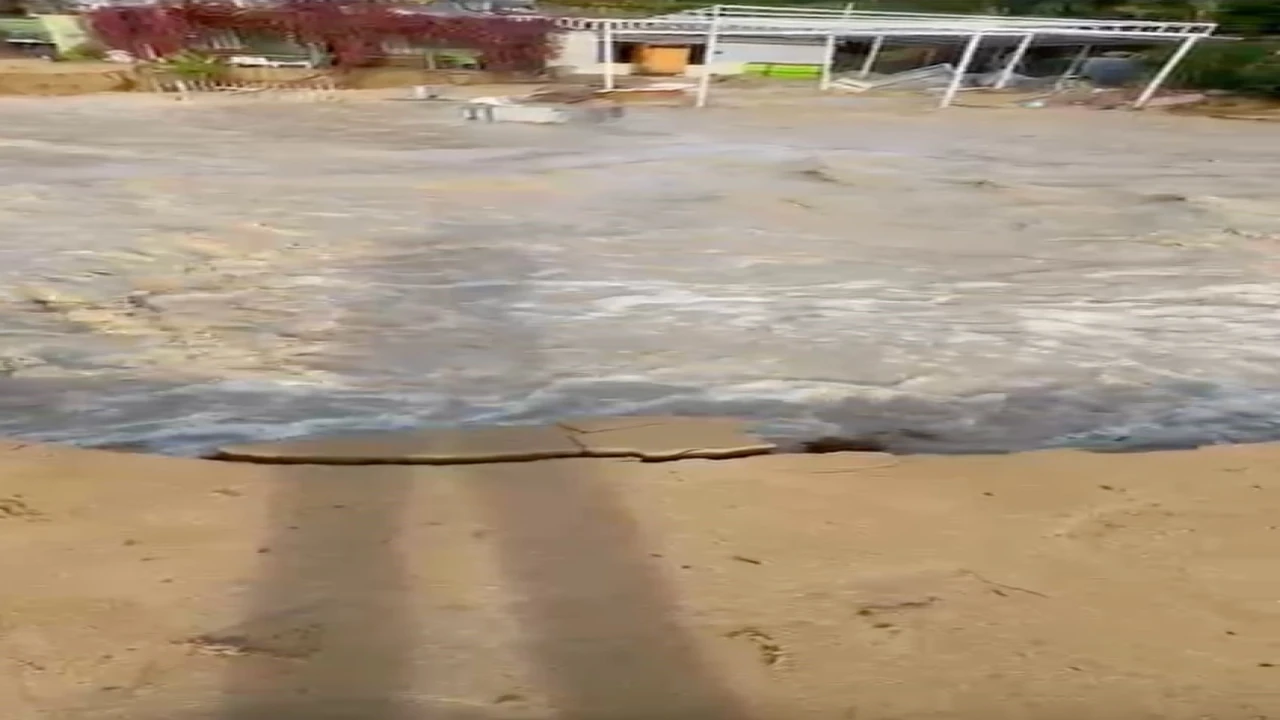 Alanya’nın İncekum Mahallesi’nde bugün öğle saatlerinde etkili olan sağanak, D-400 karayolunun kısa süre ulaşıma kapanmasına sebep oldu. Bölgedeki Ölükler Deresi de şiddetli yağmur nedeniyle taştı. Taşan derenin suları, sahilde 5 yıldızlı bir otele ait olan ve açılışa hazırlanan kafeyi adeta yerle bir etti. Kafedeki ocak, dolap gibi malzemeler suyla sürüklenerek ortalığa saçılırken, dereden taşan sular sahildeki kumları da denize taşıdı. Dereden taşan suyun sahil ve kafeye verdiği zarar cep telefonu ile görüntülendi.