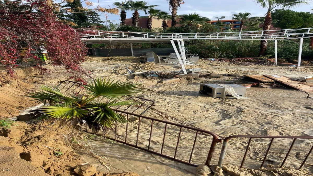Antalya’nın Alanya ilçesinde etkili olan sağanakta derenin taşması sonucu 5 yıldızlı otelin sahildeki kafesi yıkıldı.