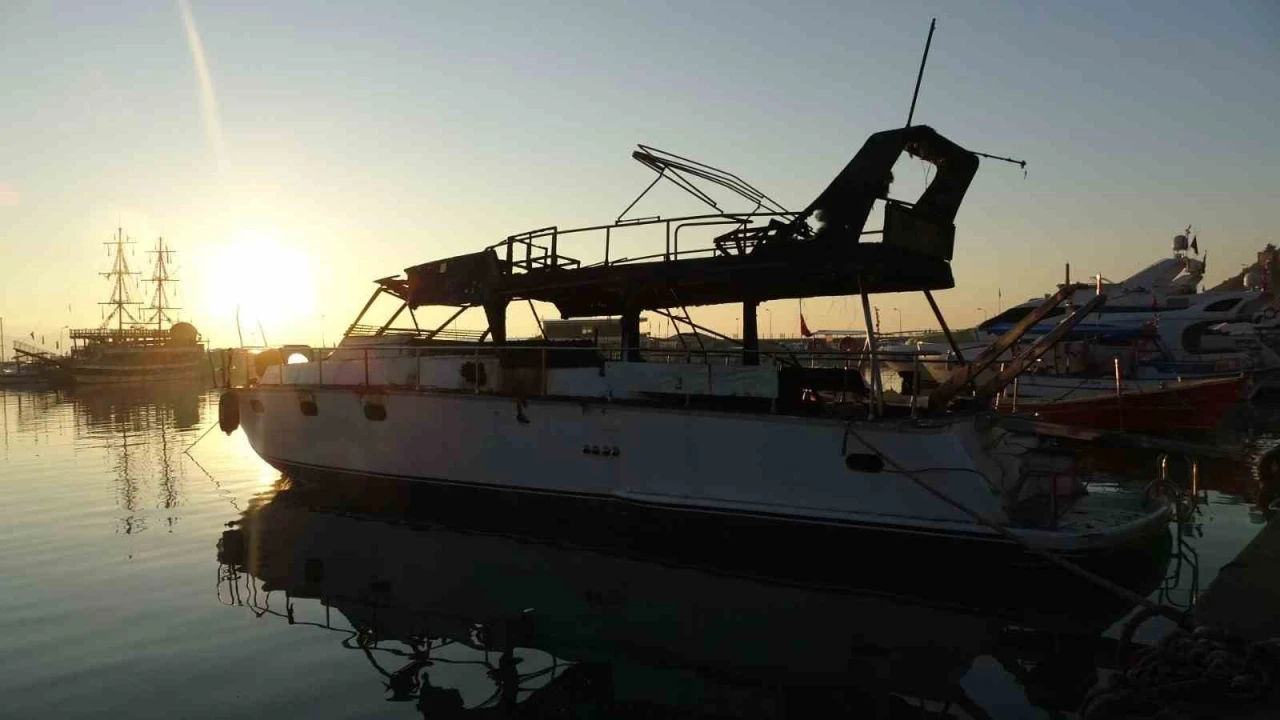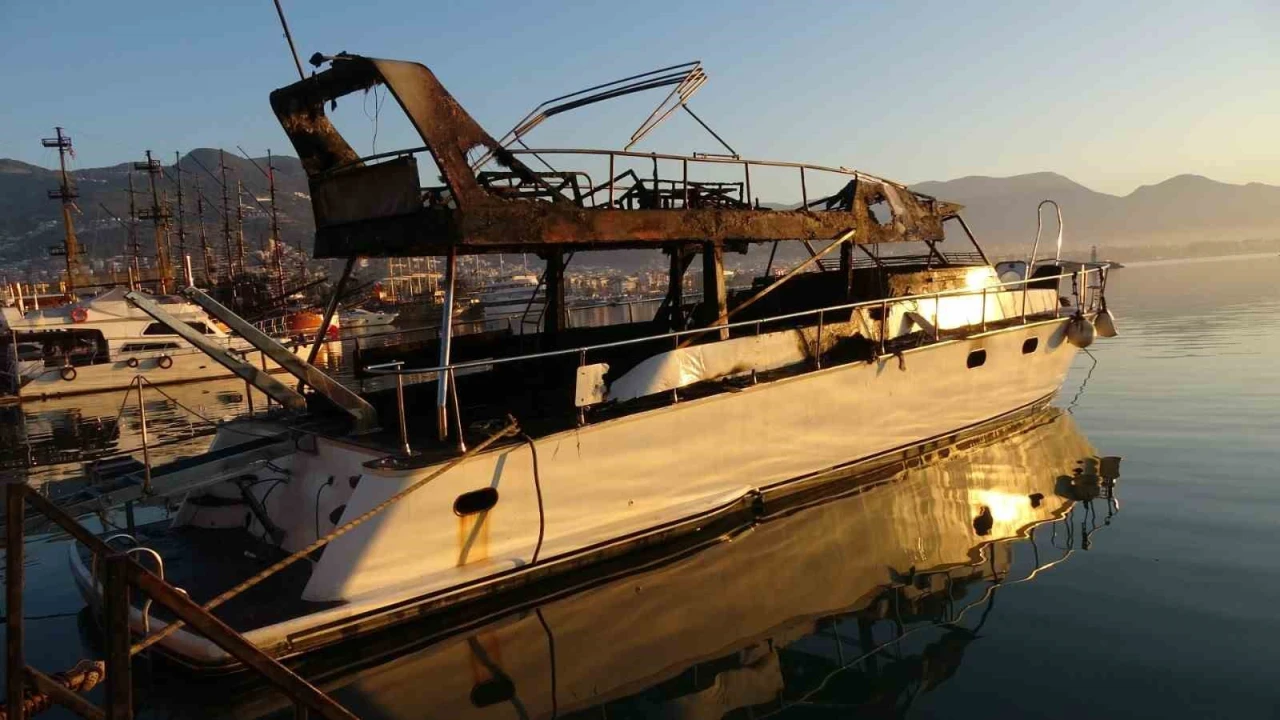 ANTALYA’NIN ALANYA İLÇESİNDE İSKELEYE DEMİRLİYKEN LÜKS TEKNEDE ÇIKAN YANGININ BOYUTU GÜN AĞARINCA ORTAYA ÇIKARKEN, TEKNE KULLANILAMAZ HALE GELDİ.