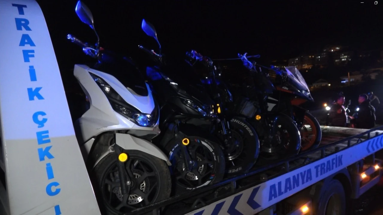 Alanya İlçe Emniyet Müdürlüğü Trafik Denetleme Büro Amirliği ve Motorize Yunus ekiplerinin beraber yürüttüğü uygulamada yarış yapmak için toplanan ve plakaların okunmamasını sağlayacak şekilde değişiklik yapıp gizlediği tespit edilen motosiklet sürücülerine cezai işlem uyguladı.