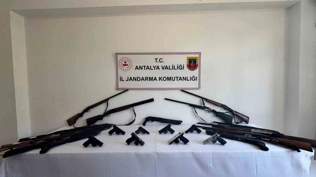 Alanya İlçe Jandarma Komutanlığı, Asayiş, JASAT, KOM Takip Timi ve İstihbarat ekiplerinin katılımıyla istihbarat çalışmaları sonucunda Alanya’nın Okurcalar, İncekum, Avsallar, Türkler, Alara, Akdam, Saburlar ve Çakallar mahallelerinde belirlenen adreslere sabah saat 07.00’de eş zamanlı operasyon düzenlendi. 6 ayrı adrese yapılan baskınlarda 8 adet tabanca, 13 adet av tüfeği, 8 adet tabanca şarjörü, 155 adet tabanca fişeği, 180 adet av tüfeği fişeği ele geçirildi. Operasyonda gözaltına alınan şüphelilerden 2’si çıkarıldıkları mahkemece tutuklanarak cezaevine gönderildi. 4 şüpheli adli kontrol şartıyla serbest bırakılırken, 11 kişi hakkında ise idari işlem başlatıldığı bildirildi.
