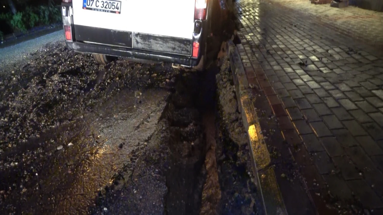 Antalya’nın Alanya ilçesinde dün akşam saatlerinde başlayan yağmur, daha önce yer altı elektrik hat çalışması yapılan yerde yol çökmesine neden oldu.