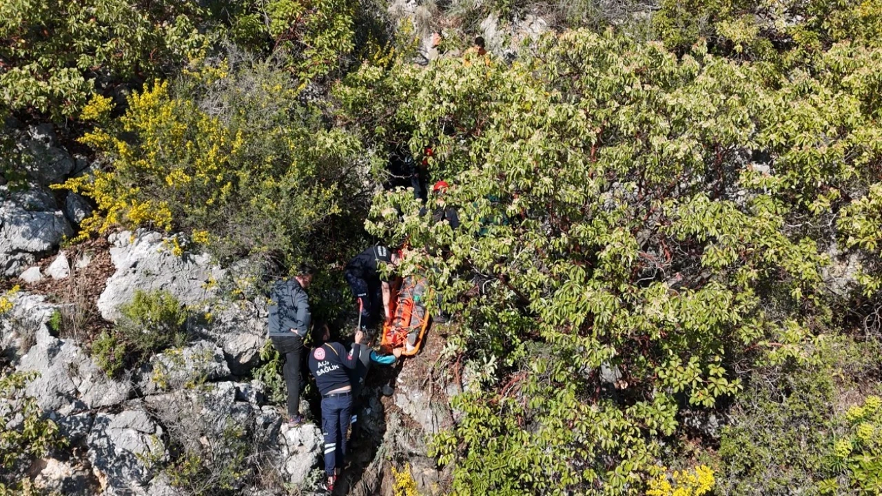 Antalya’nın Alanya ilçesinde paraşütle havalanan bir kişi, alçak uçuş yaptığı esnada makilik alana paraşütünün takılması sonucu düşerek yaralandı. Dağda mahsur kalan kişi, ekiplerin başarılı operasyonuyla kurtarılırken, o anlar dron kamerası ile görüntülendi.
